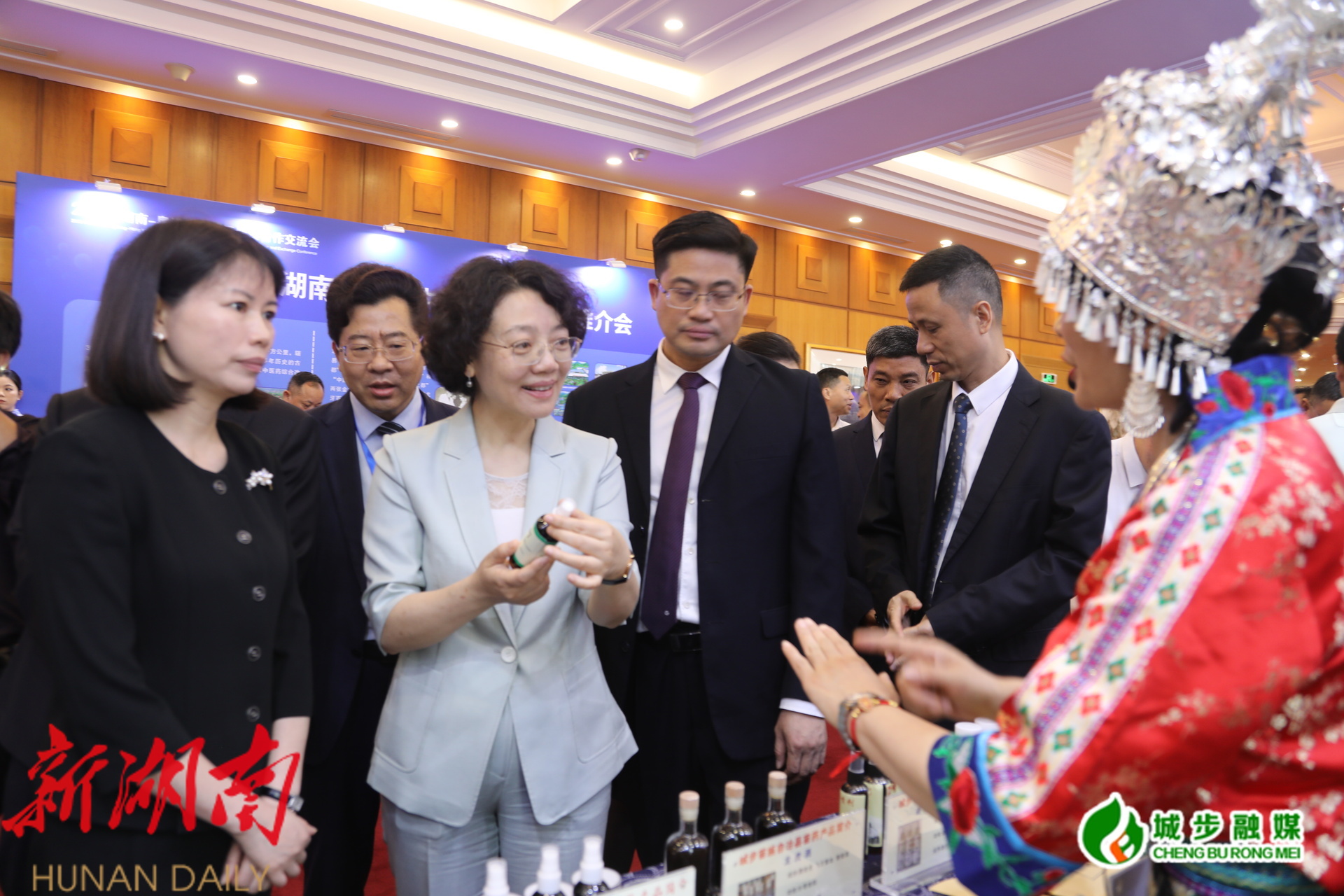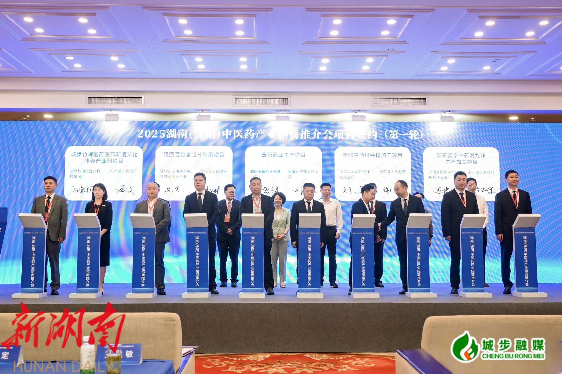 在招商推介会巡展环节,城步特色苗药成为一大亮点。烫伤药、溃疡散、九层根、树舌等苗药产品全面展示,吸引了众多客商、参展嘉宾驻足咨询。项目签约仪式上,城步竹海堂苗医药非遗康养产业园项目成功上台签约。