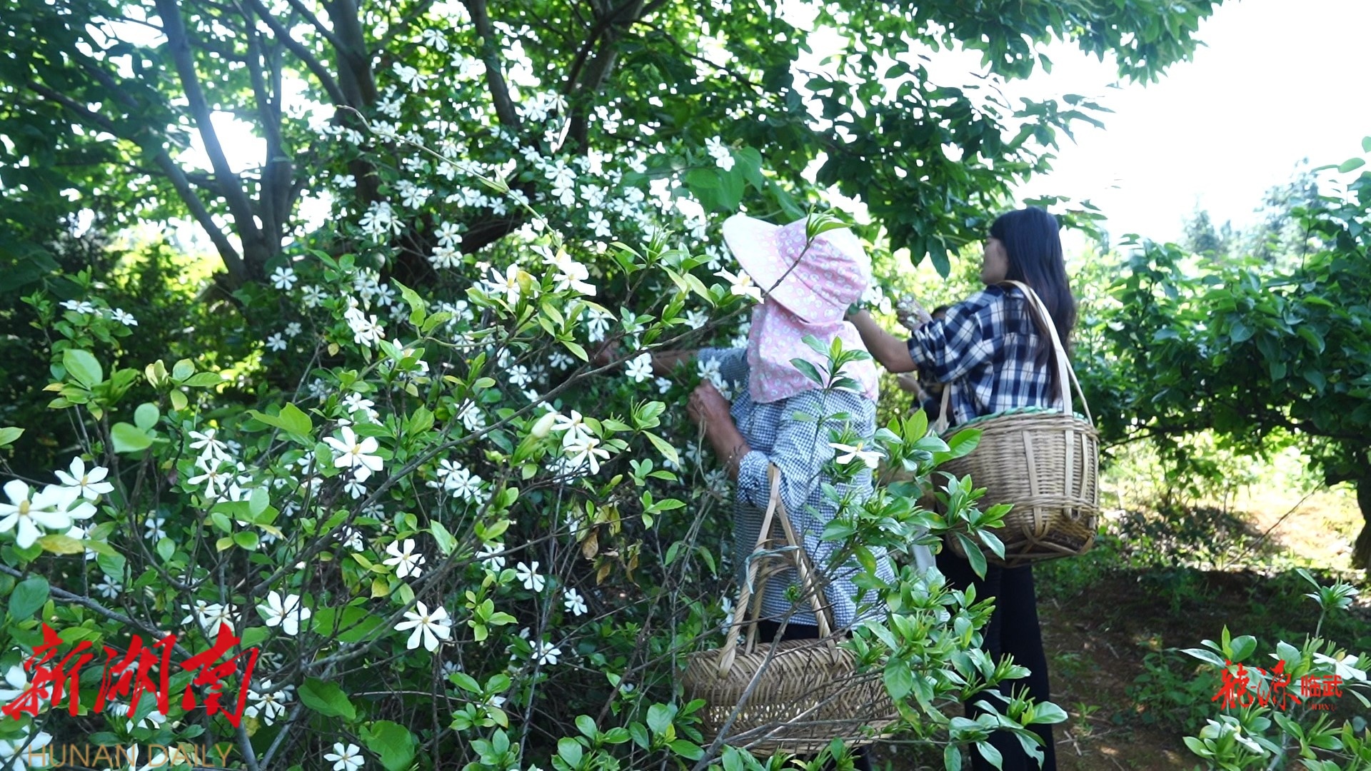 在龙水村,漫山遍野的栀子花点缀林间。一大早,村民邓素娟头戴草帽、手挎竹篮,穿行于山野林间。她熟练地拨开灌木,指尖轻捻间,一朵朵含苞待放的栀子花落入篮中。这种将开未开的骨朵,不仅香气浓,口感也脆嫩。