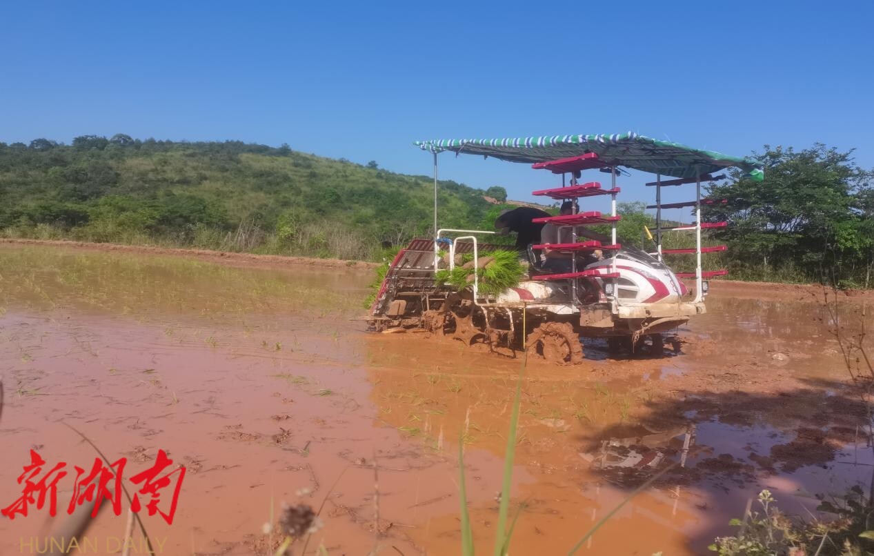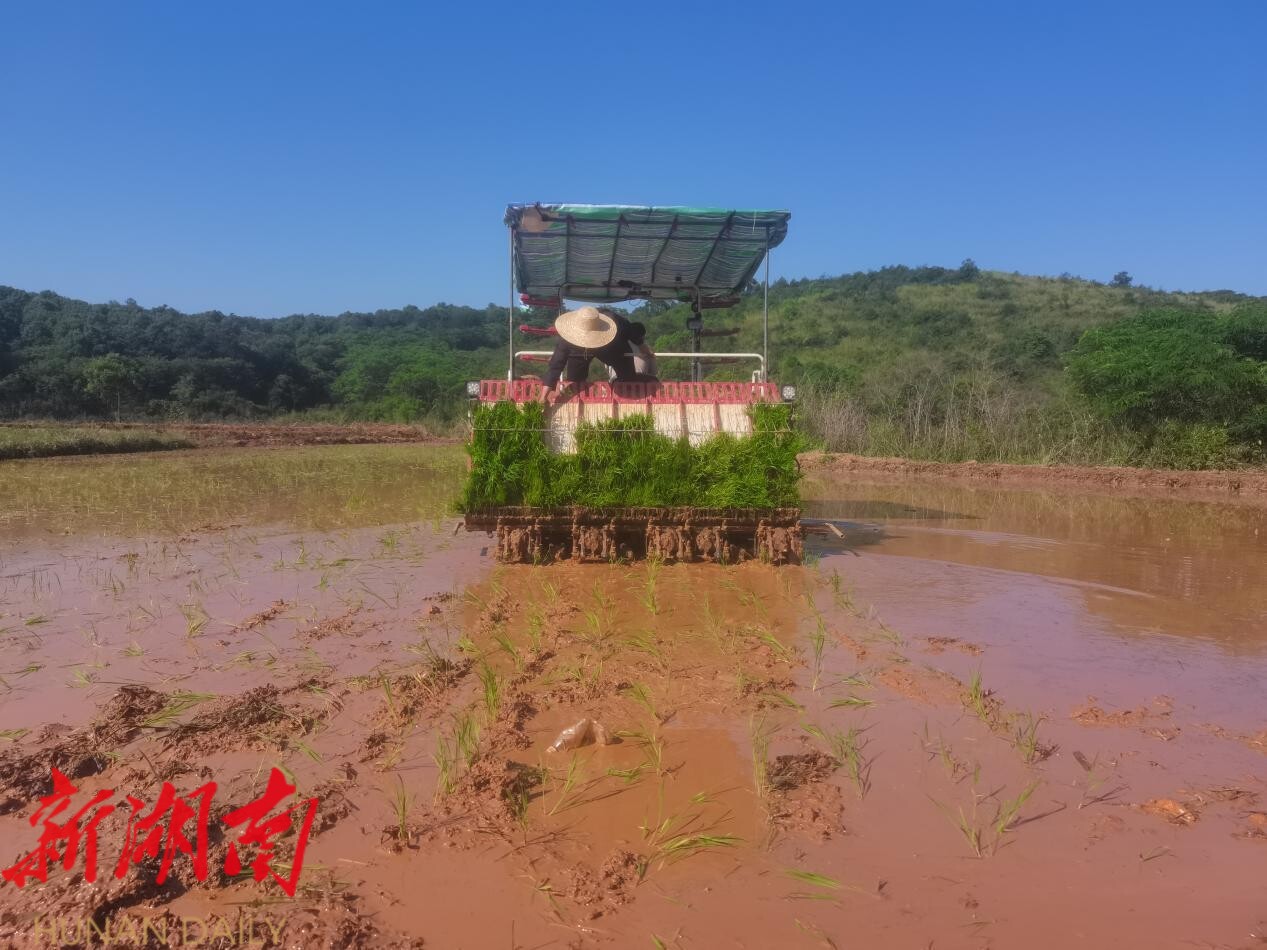 新桂阳5月15日讯(通讯员 尹友飞 黄杰 张利军)近日,在郴州市桂阳县樟市镇樟市村,农户驾驶插秧机进行早稻插秧作业,为粮食丰收打下基础,田间地头一派农事繁忙景象。