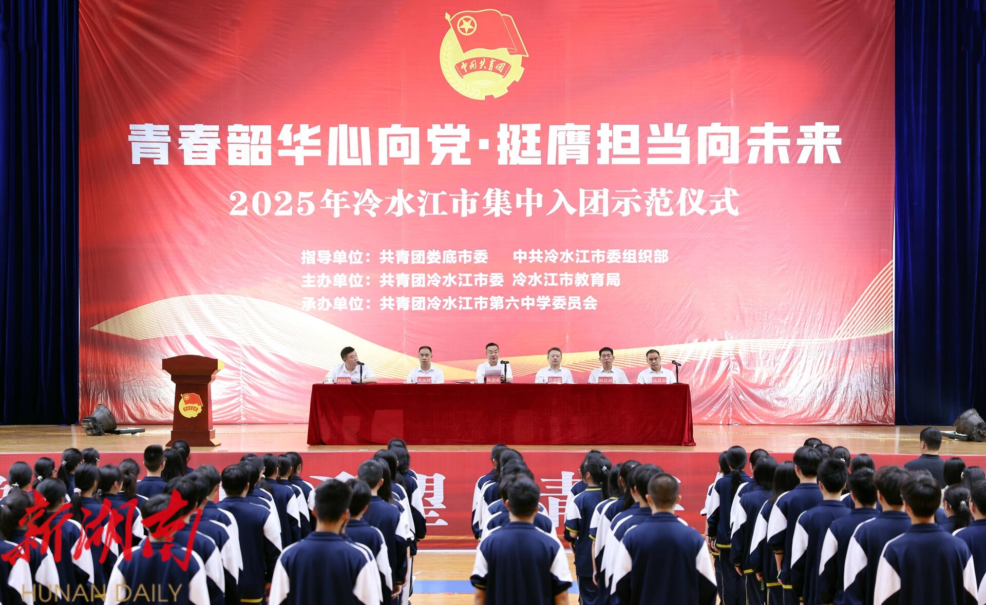湖南日报·新湖南客户端5月15日讯(通讯员 曹丹)今天上午,冷水江市“青春韶华心向党·挺膺担当向未来”集中入团示范仪式在市第六中学举行。市委书记、市长陈创业勉励新团员牢记入团誓言,坚定理想信念,以青春向党的昂扬姿态、与国同光的时代担当,在实践中踔厉奋发,绽放青春梦想。