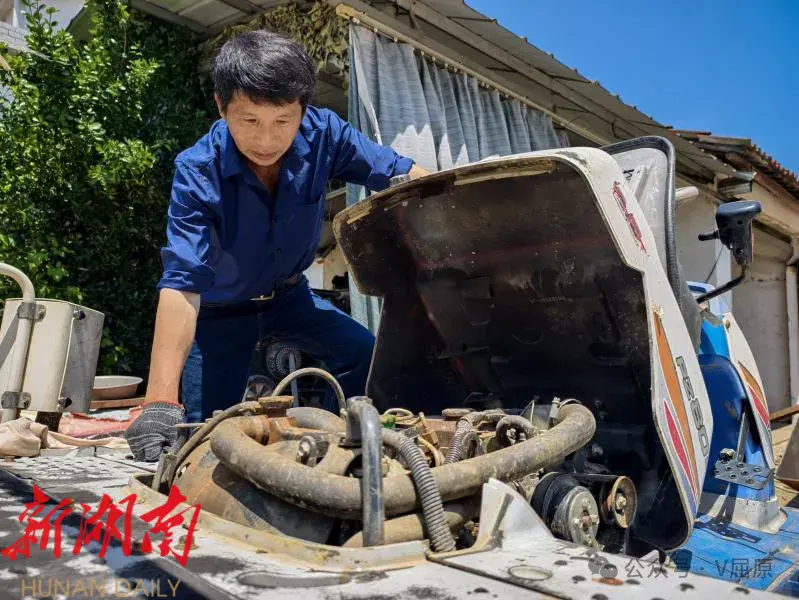 湖南日报·新湖南客户端5月16日讯(通讯员:梁静 周洋) 五月的天气暖热,太阳直照在屈原管理区河市镇金洲村村民胡召飞的庭院里。这位70后机电修理能手不知又在改造哪般种田“神器”?满院子的发电机、农机具都是他的“好伙伴”。谈到机电与种田,胡召飞这位能人能双头挑。“有爱好就有创造力,懂机械更能种好田。”他神采奕奕地说道。