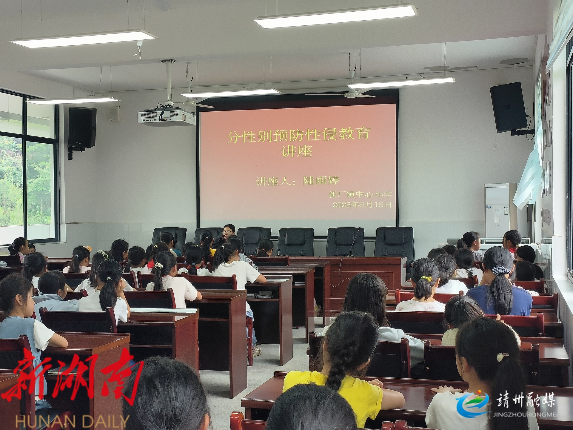 靖州融媒5月16日讯 (通讯员 邓昭霞 杨荔)5月15日,靖州苗族侗族自治县新厂镇中心小学针对五、六年级全体女生,开展“守护成长 远离侵害”防性侵安全教育专题讲座。