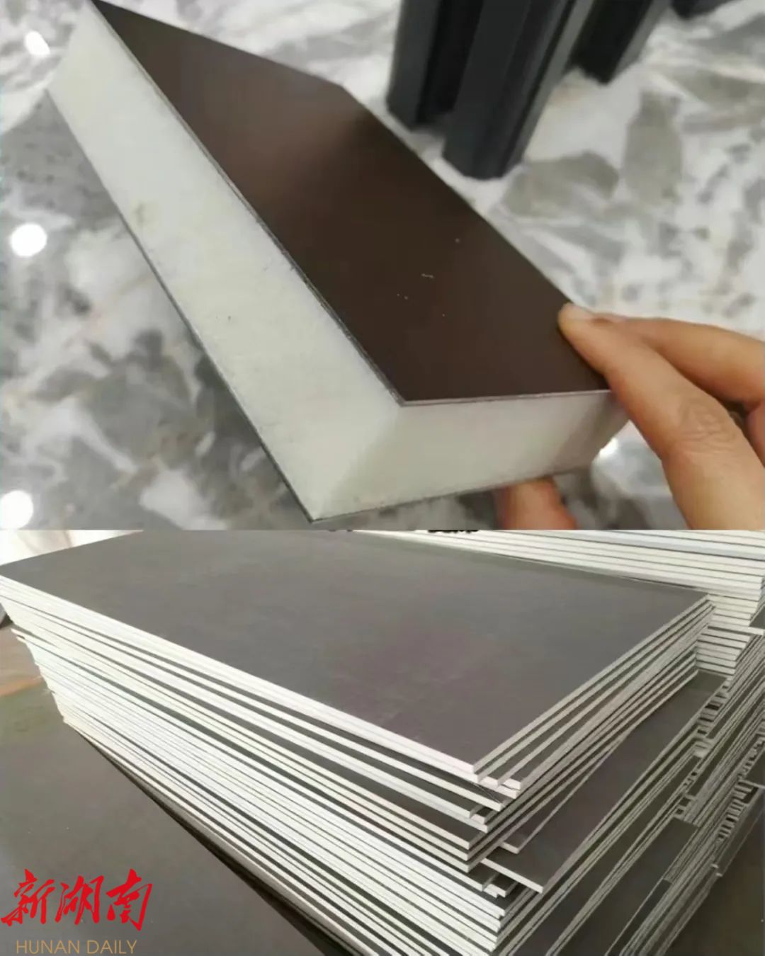 经过阻燃处理的聚氨酯板(PU)最高防火等级B1级 。双面使用铝板,中间聚氨酯硬泡,保温性能好,材料属于闭孔结构,因此稳定性强。
