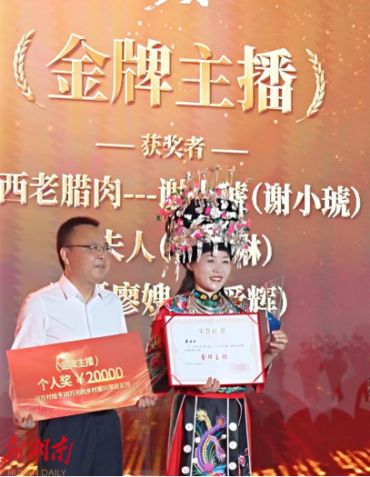 新湖南客户端5月16日讯(通讯员 田家全)近年来,直播电商在乡村振兴中的引擎作用日益凸显,农村直播电商通过“云端货架”将乡土文化、特色农产品与全国市场连接,创造了显著的经济效益。湘西土家族苗族自治州古丈县高峰镇抓住“村播”东风,在这场全省瞩目的赛事中,高峰镇以“云端带货”破局,取得短视频矩阵总播放量突破2193.93万,累计实现农产品销售额近20万元,主播向夫人(杨琳琳)荣获“金牌主播”等亮眼成绩,讲述着发展的新故事,为乡村振兴发展注入了新动能。