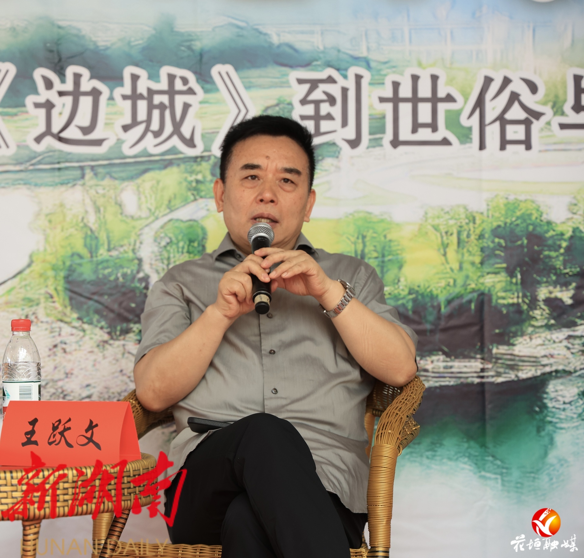 王跃文从地域文学的精神疗愈性展开论述。他表示:“《边城》描绘了湘西山水间生活着的人们对美好生活的向往,深刻传递出沈从文先生对家乡父老乡亲刻骨铭心的挚爱。”