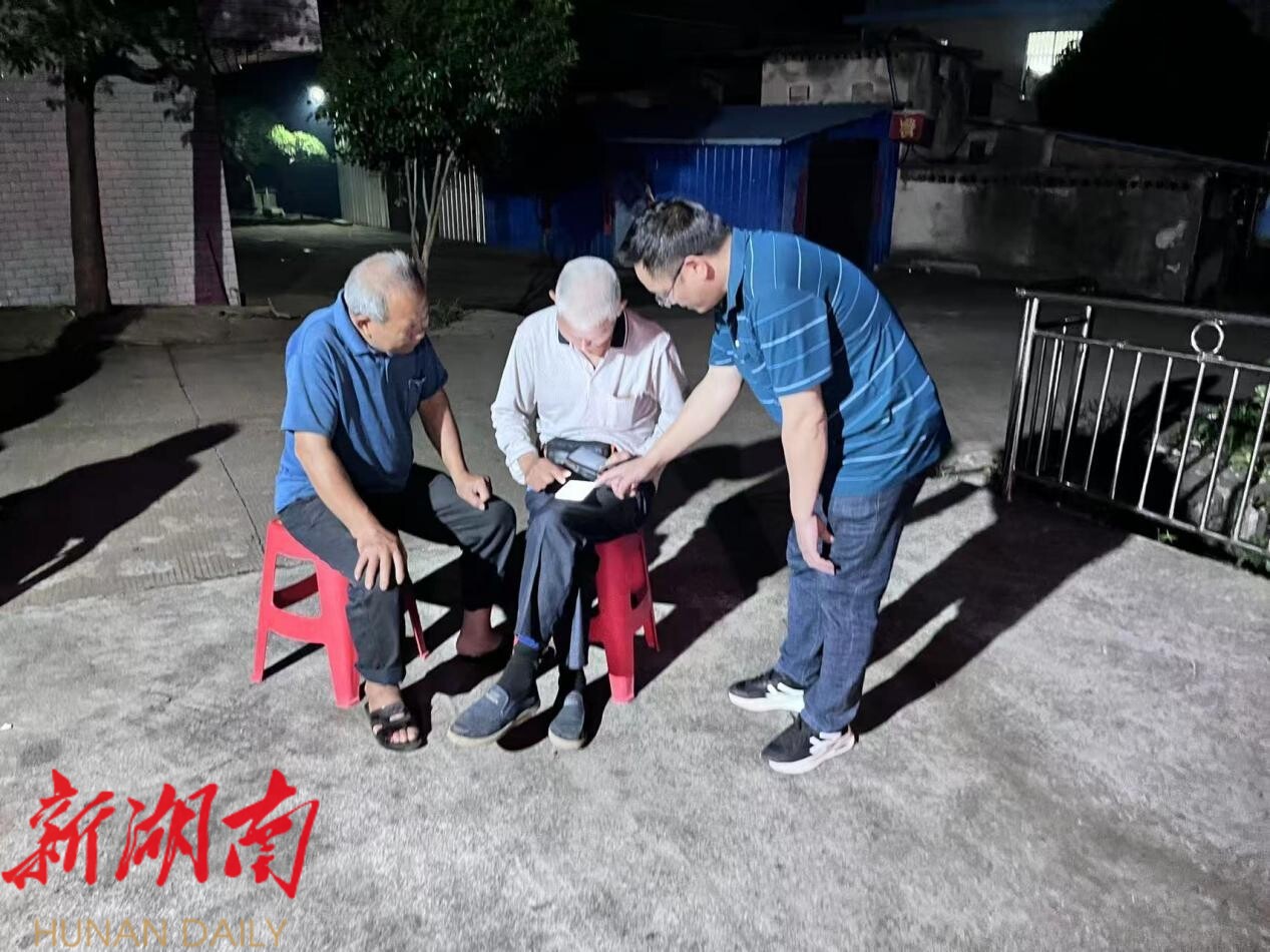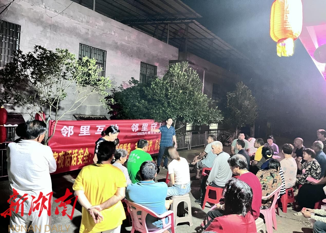 新桂阳5月16日讯(通讯员 尹友飞 周淑芳)5月15日晚,樟市镇东郊村一位独居老人的屋前灯火通明,一场以“农家夜话·邻里守望”为主题的暖心活动在此举行。镇、村干部与村民围坐一圈,讲政策、解难题、听民意,将党的温暖送到群众心坎上。