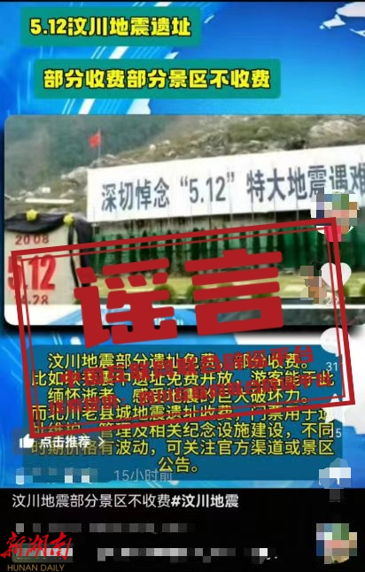真相: 近日,有网民发布“5·12特大地震北川老县城地震遗址收费”相关信息,引发关注和讨论。5·12汶川特大地震纪念馆表示,该信息内容不实。北川老县城地震遗址自2013年5月全面对外开放以来, 实行免费不免票政策 ,社会公众可在5·12汶川特大地震纪念馆官方网站、微信公众号咨询和预约, 现场凭有效身份证件免费参观 。(来源:四川互联网举报辟谣平台)