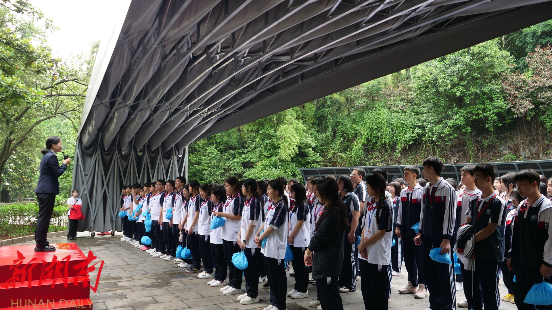 活动以“走进伟人故里,传承红色基因,争做时代新人”为主题,学生们在毛泽东广场向伟人铜像敬献花篮,并一起宣读誓词。在毛泽东同志纪念馆和故居,师生们通过《中国出了个毛泽东》主题展览、革命文物展陈及数字化互动场景,系统了解伟人生平与革命历史。研学期间,学生代表参与“韶山下的思政课”专题党课,结合虚拟现实技术体验“秋收起义”历史片段,并在研学手册上记录感悟。