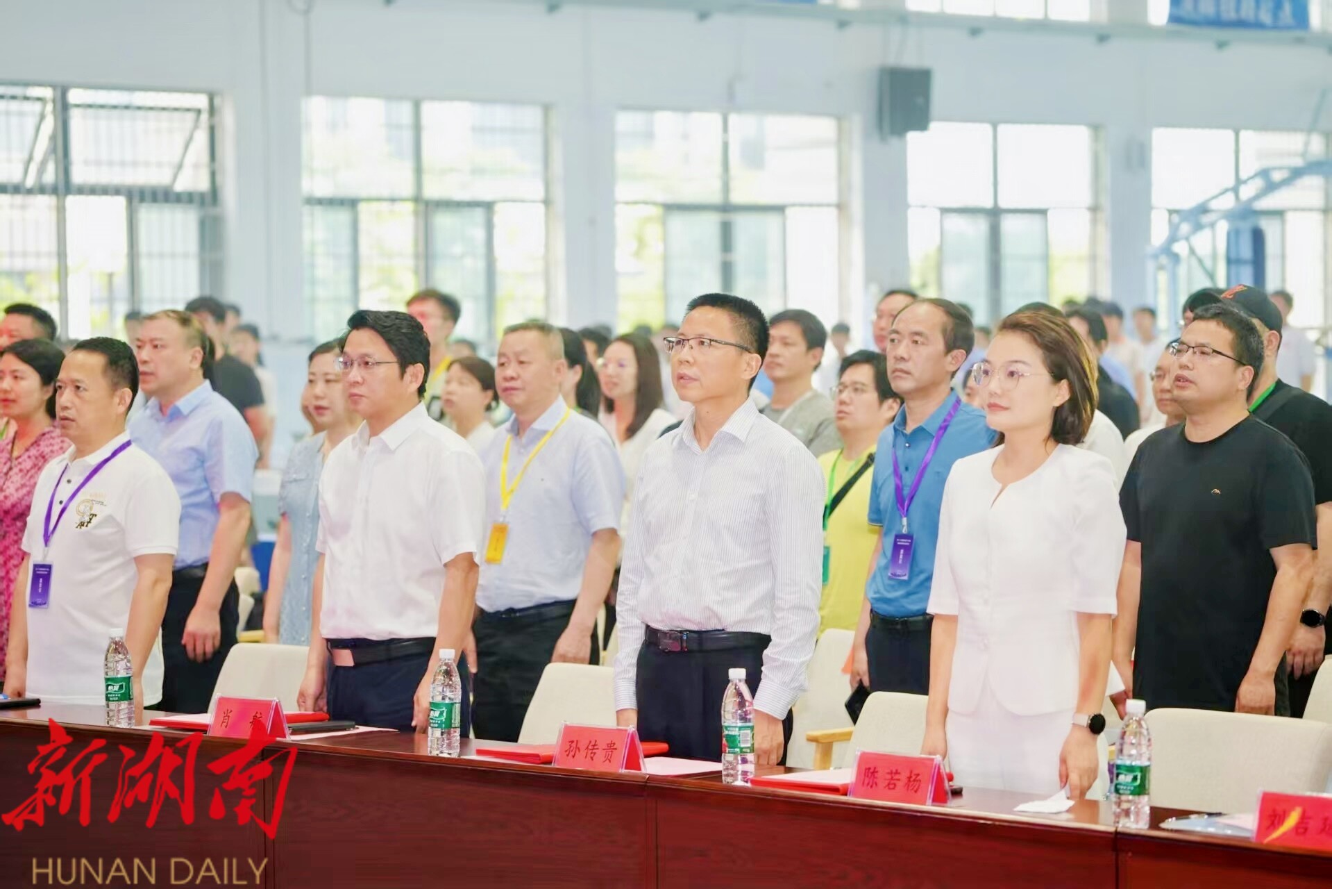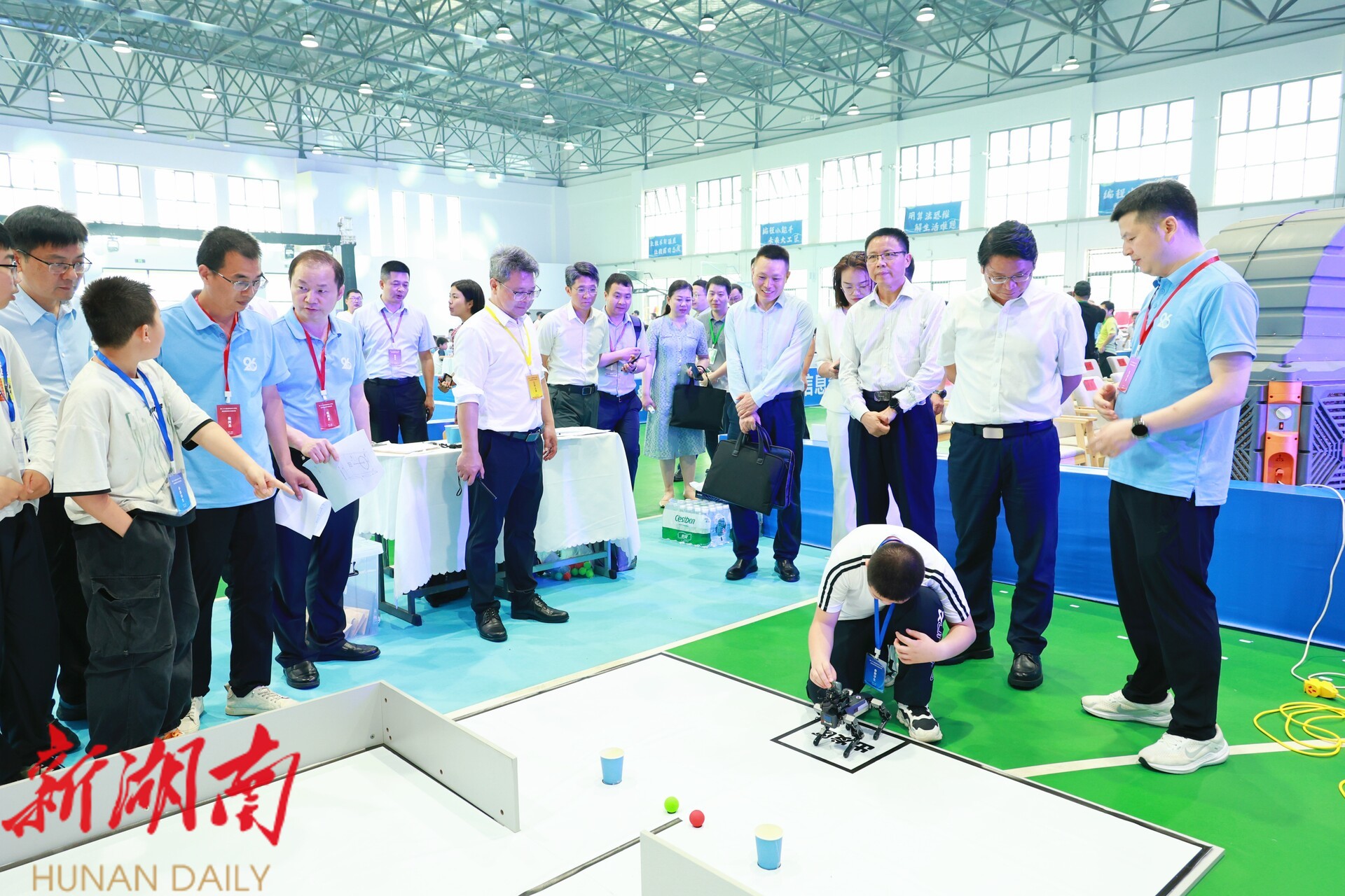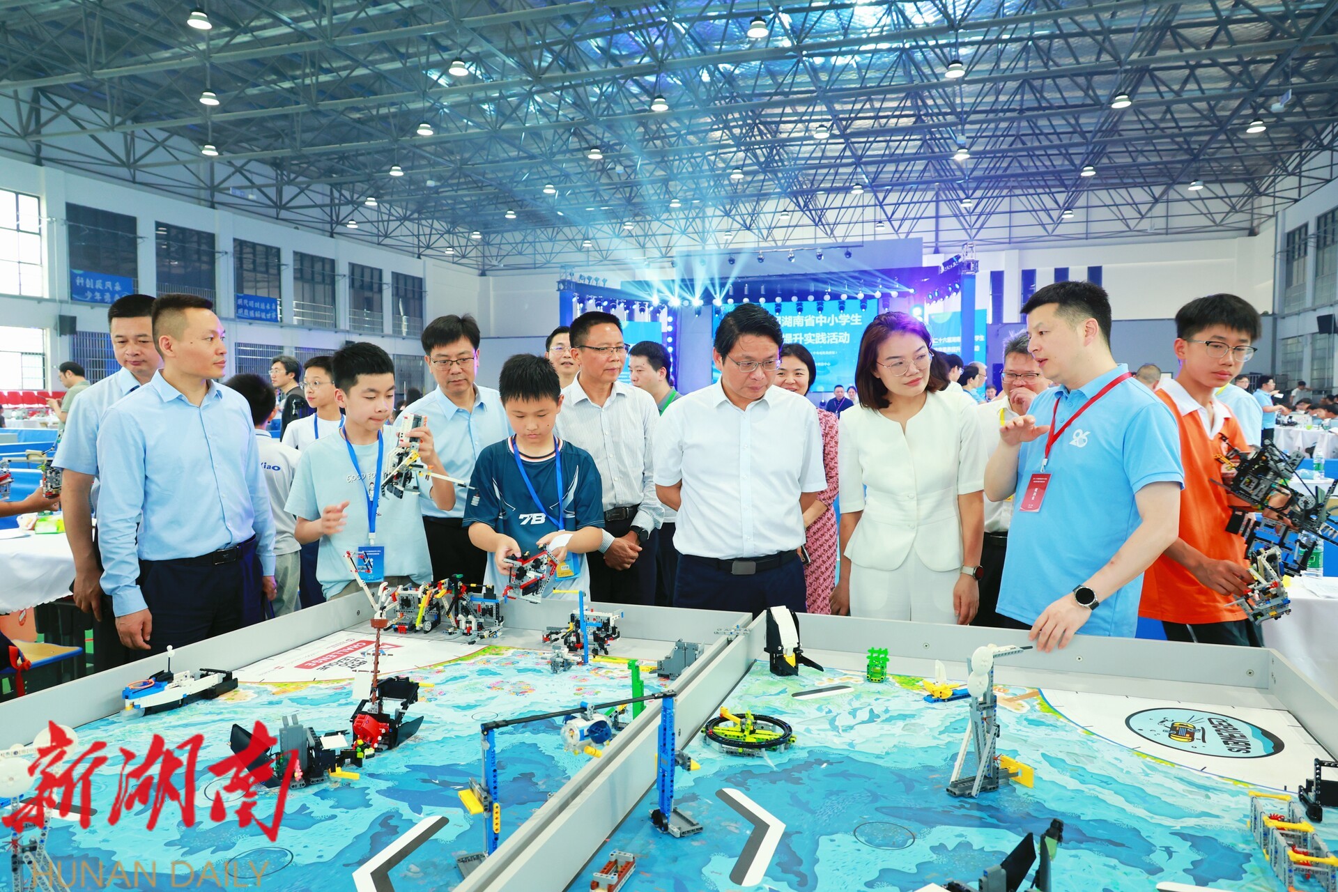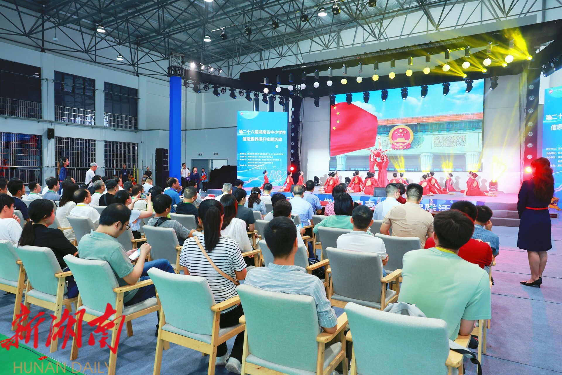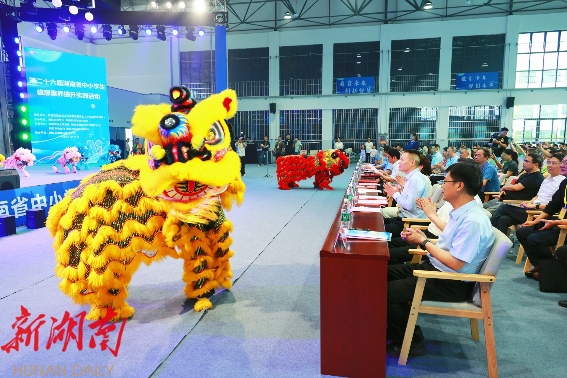教育部教育技术与资源发展中心副主任肖航、湖南省教育厅副厅长孙传贵、湖南省科学技术协会副主席李为、湘潭市人民政府副市长陈若杨、中国电化教育杂志社社长蒋宇、 湖南省电化教育馆馆长刘吉延、湖南省科协青少年科技中心主任钟飞彪、湘潭市教育局局长唐正武、湘潭市科学技术协会党组书记谢兰焰、湘潭市雨湖区委书记陈小平等共同开启第二十六届湖南省中小学生信息素养提升实践活动。现场气氛瞬间沸腾,一场科技与教育的盛宴就此开启。