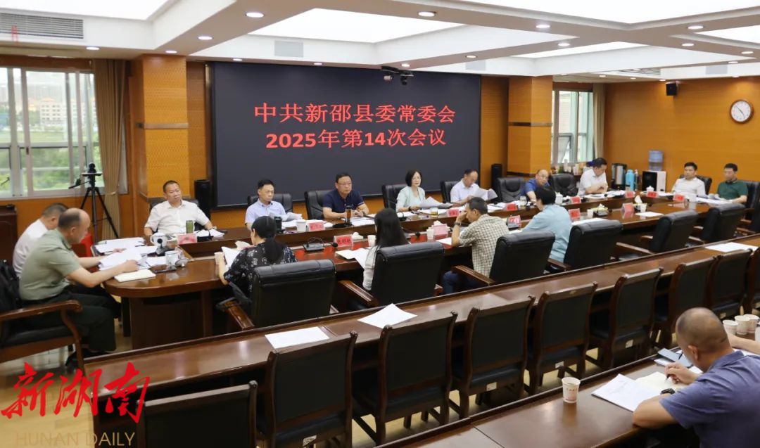 新新邵客户端5月17日讯(记者 屈凌芙蓉 唐文峰)5月16日下午,新邵县委常委会召开2025年第14次会议,传达学习习近平总书记近期重要讲话重要指示精神,研究部署当前重点工作。县委书记黄海蓉主持会议。