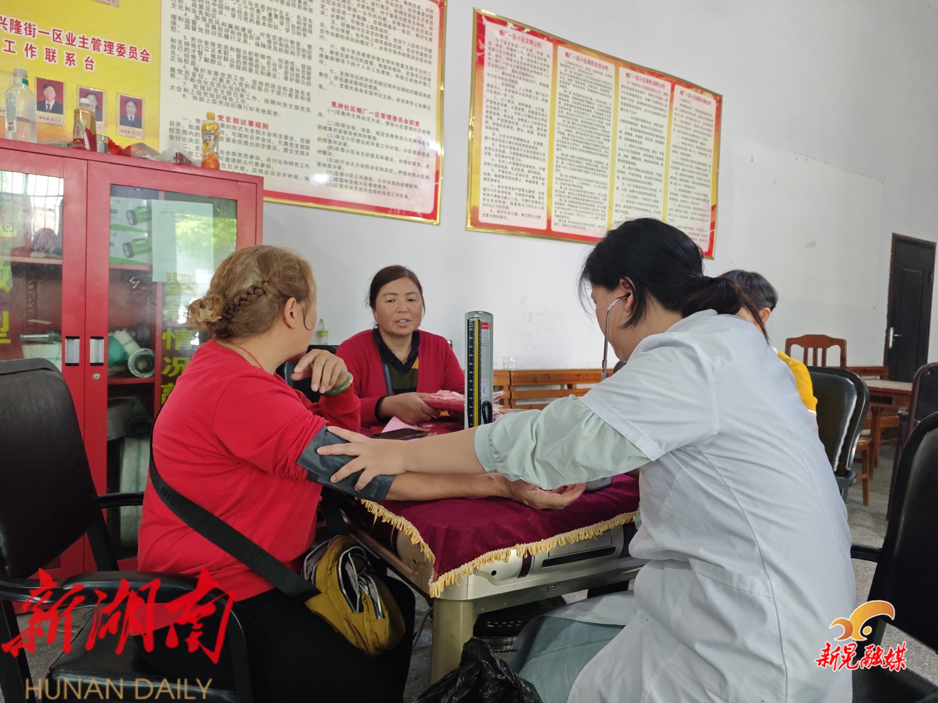 在爱心义诊专区,专业医护人员为居民提供免费量血压、血糖检测及慢性病咨询。医护人员针对群众所关心的问题进行一对一解答,并发放健康宣传手册,“零距离”守护群众健康。