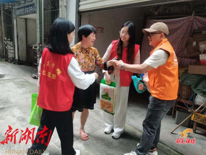 当天,工作人员还为困境家庭送上了装有米面、粮油、清洁用品等物资的 “暖心关爱礼包”,用实际行动关爱辖区困境老人。