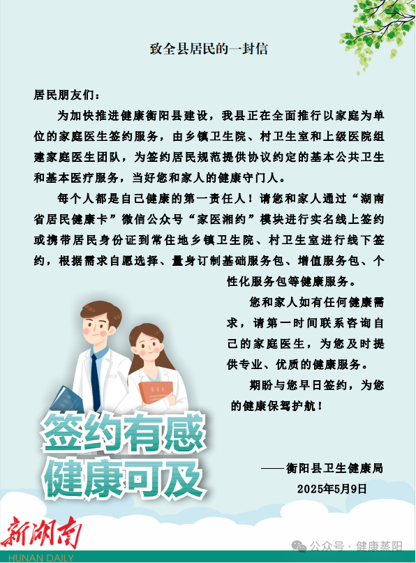 致全县居民朋友的一封信—— 我是您的家庭医生,守护您健康的“贴心人”