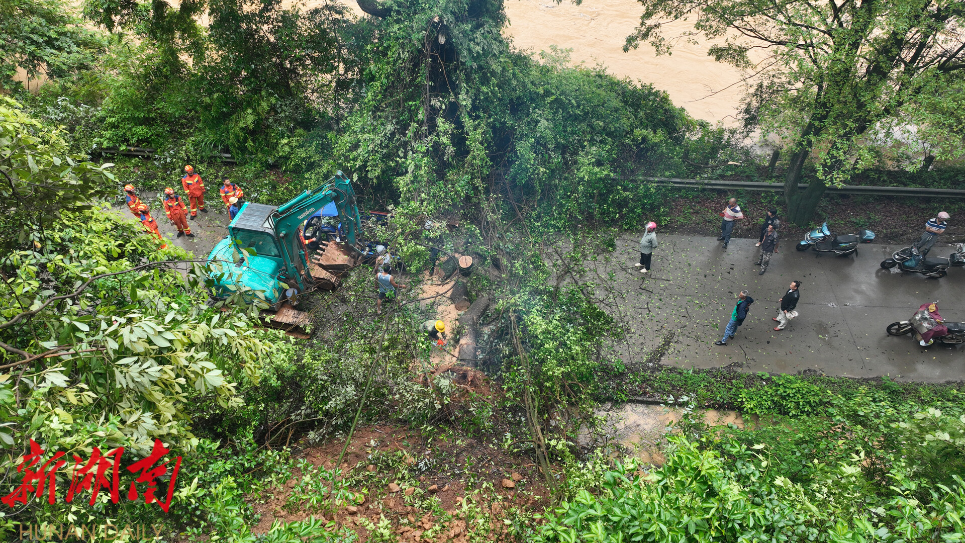此外,暴雨还造成五里沟路段多处塌方,大树和藤蔓倾倒在道路上,完全阻断交通。中和镇协同应急救援等部门,立即调来油锯和挖机等设备,把道路上的树木、泥土清除干净,确保村民出行安全畅通。“镇里组织所有党员干部及时到一线进行道路管制,及时告知 村民注意安全,将房屋和农田里的洪水及时排出,把财产损失降到最低。 ” 宁远县中和镇保和片组长徐杰表示。