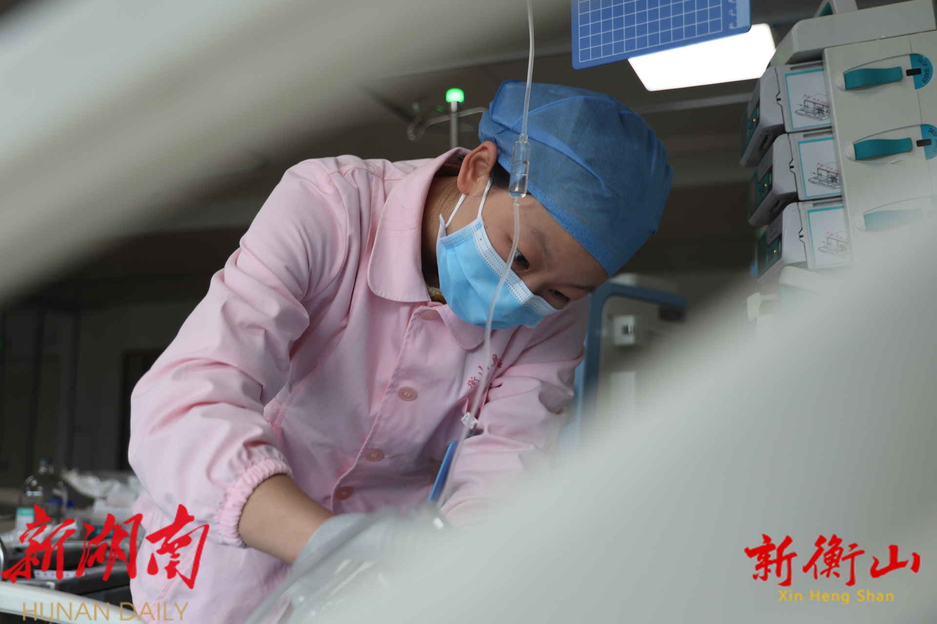 走进衡山县人民医院重症监护室,仪器的滴答声、警报的嗡鸣声交织成紧张的节奏。胡思贻穿梭在病床间,轻声细语地与患者交流,有条不紊地完成日常护理工作,手中的操作精准而迅速。