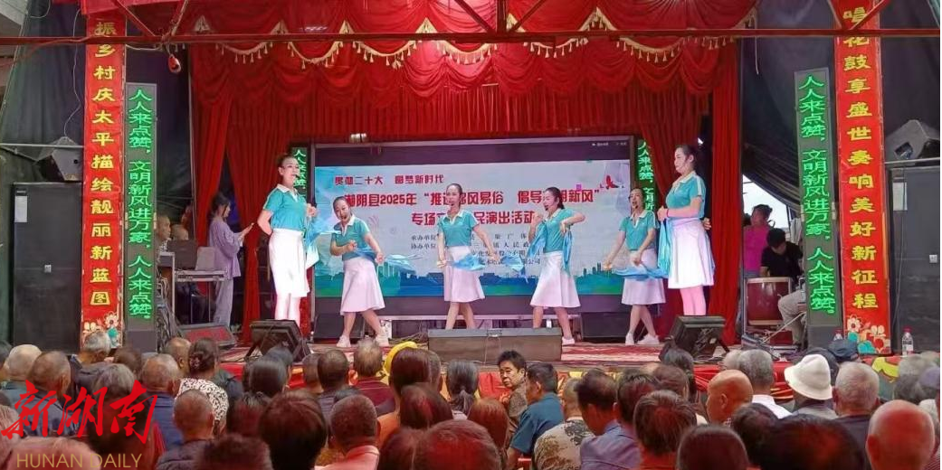 湖南日报·新湖南客户端5月19日讯(通讯员 杨锡)连日来,由湘阴县文旅广体局主办的湘阴县2025年“推进移风易俗 倡导文明新风”专场文化惠民演出活动走进三塘镇、东塘镇等地,活动以文艺演出的形式弘扬文明风尚,吸引了近千名群众驻足观看。