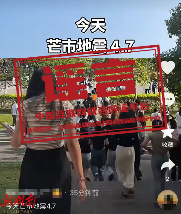辟谣:云南省德宏州:这些关于地震的传言是假的!