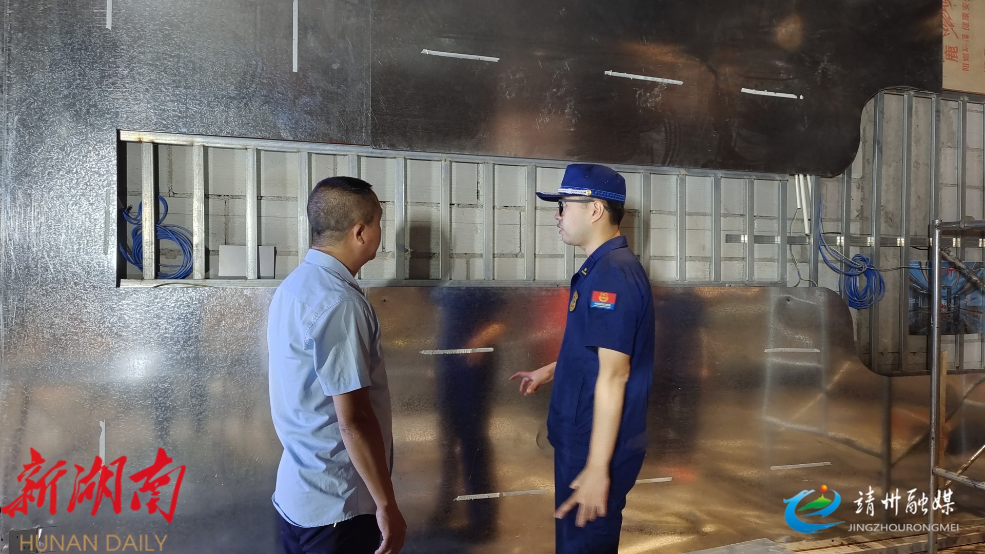 消防人员检查电气线路(龙俊霓 摄)