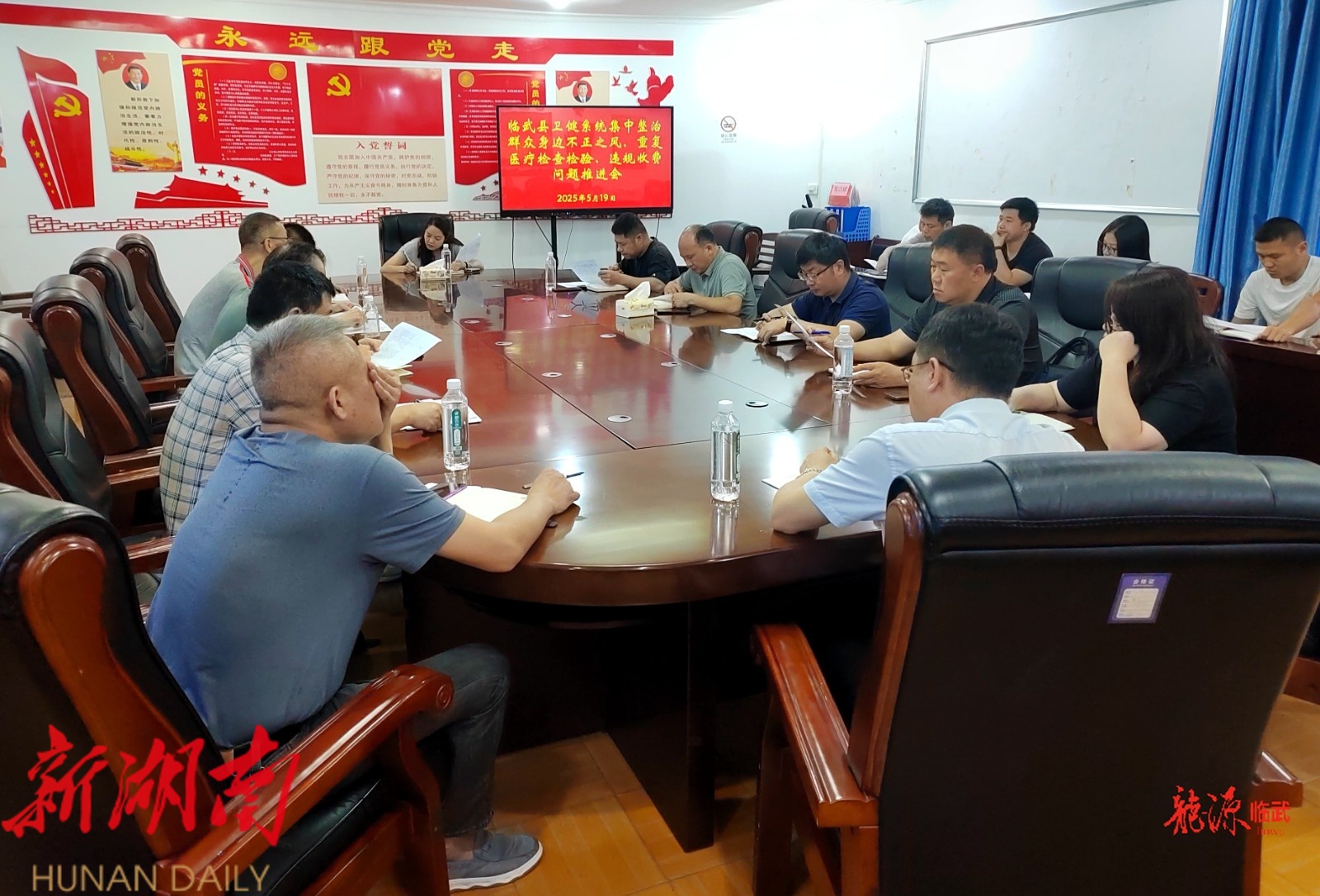 龙源临武客户端5月20日讯(通讯员 曹金银)5月19日,临武县卫健系统医疗卫生行业集中整治群众身边不正之风、重复医疗检查检验及违规收费问题推进会召开,传达省市专题会议精神,听取工作推进情况汇报,组织学习《临武县整治医疗过度检测及违规收费问题工作方案》,县乡医疗卫生单位负责人参加会议。