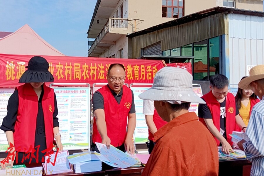 视外桃源客户端5月19日讯(通讯员: 罗兰芳 ) 近日,桃源县农业农村局联合桃源县司法局、桃源县妇联以及漳江街道,围绕“深入开展法治宣传教育,持续推进乡村全面振兴”宣传主题,在漳江街道车湖垸墟场开展“送法下乡”农村法治宣传教育活动。