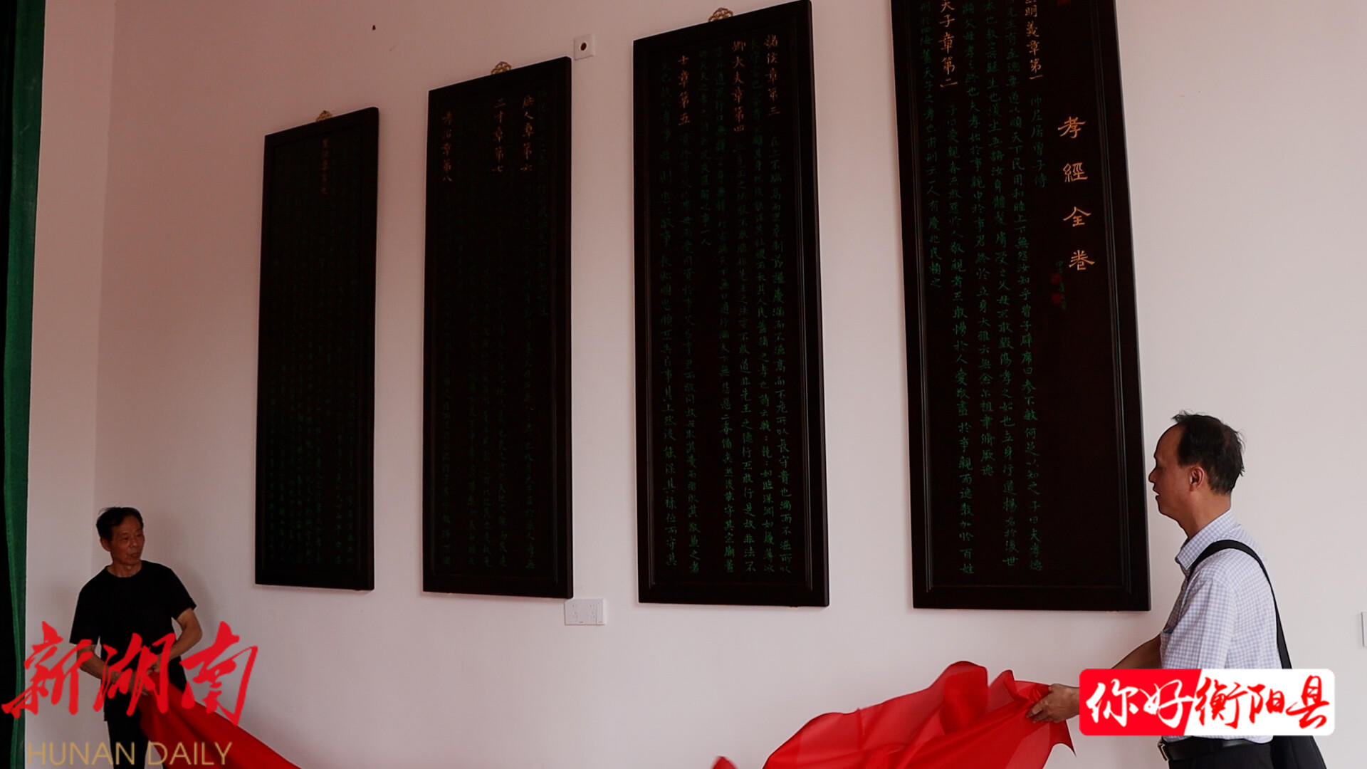 当天,由长安乡长龙村村民曾宪君夫妇捐赠,县书法家协会副主席杨展鸿书写,县民间文艺家协会主席、高级木雕艺师杨奇尚雕刻的大型木雕《孝经》在庙山寺揭幕,该木雕花费1.6万元,刻录《孝经》全文2卷18章,为湖南省现存最大最全的《孝经》拓刻木雕。