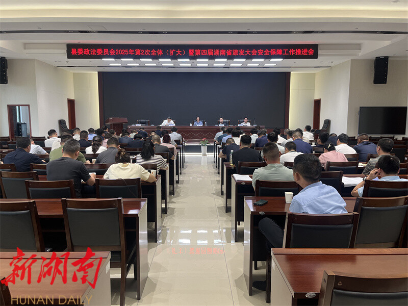 湖南日报·新湖南客户端5月20日讯(通讯员 付琴) 5月19日,县委政法委员会2025年第2次全体(扩大)会暨第四届湖南旅发大会安全保障工作推进会召开,县委副书记、政法委书记宋华出席并讲话,副县长、县公安局局长刘斌清,县人民法院院长古田,县检察院检察长闵孚君参加。