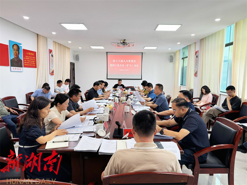 湖南日报·新湖南客户端5月20日讯(通讯员周昱君) 5月20日,县人大常委会主任、党组书记周峰主持召开县十八届人大常委会第四十次主任(扩大)会议,党组副书记、副主任王卫兵,副主任彭碧芳、胡秉阳、吴承棉、任三星参加。
