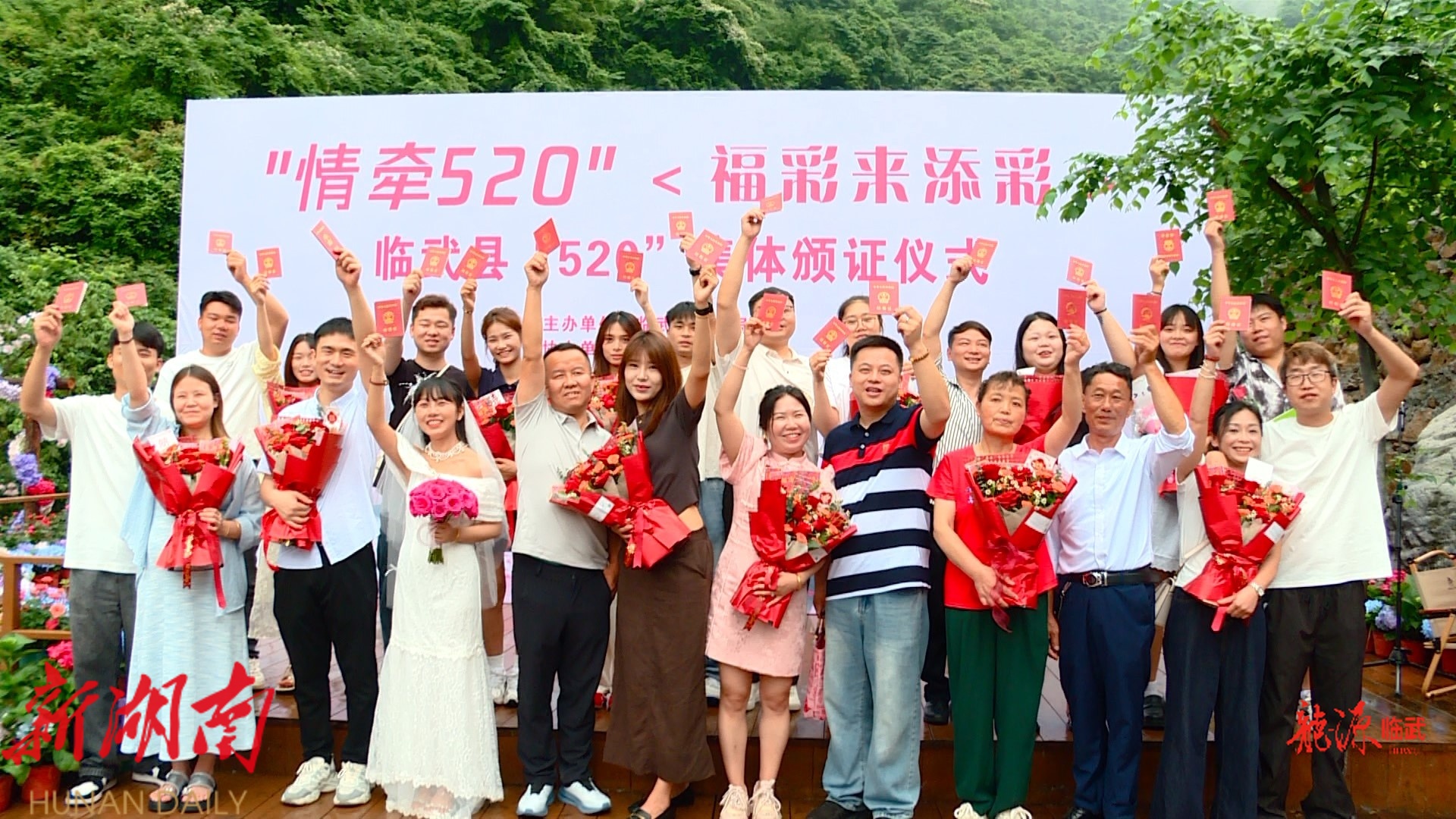 据统计,临武县婚姻登记处在“520”当天共见证了70对新人携手步入婚姻的殿堂。