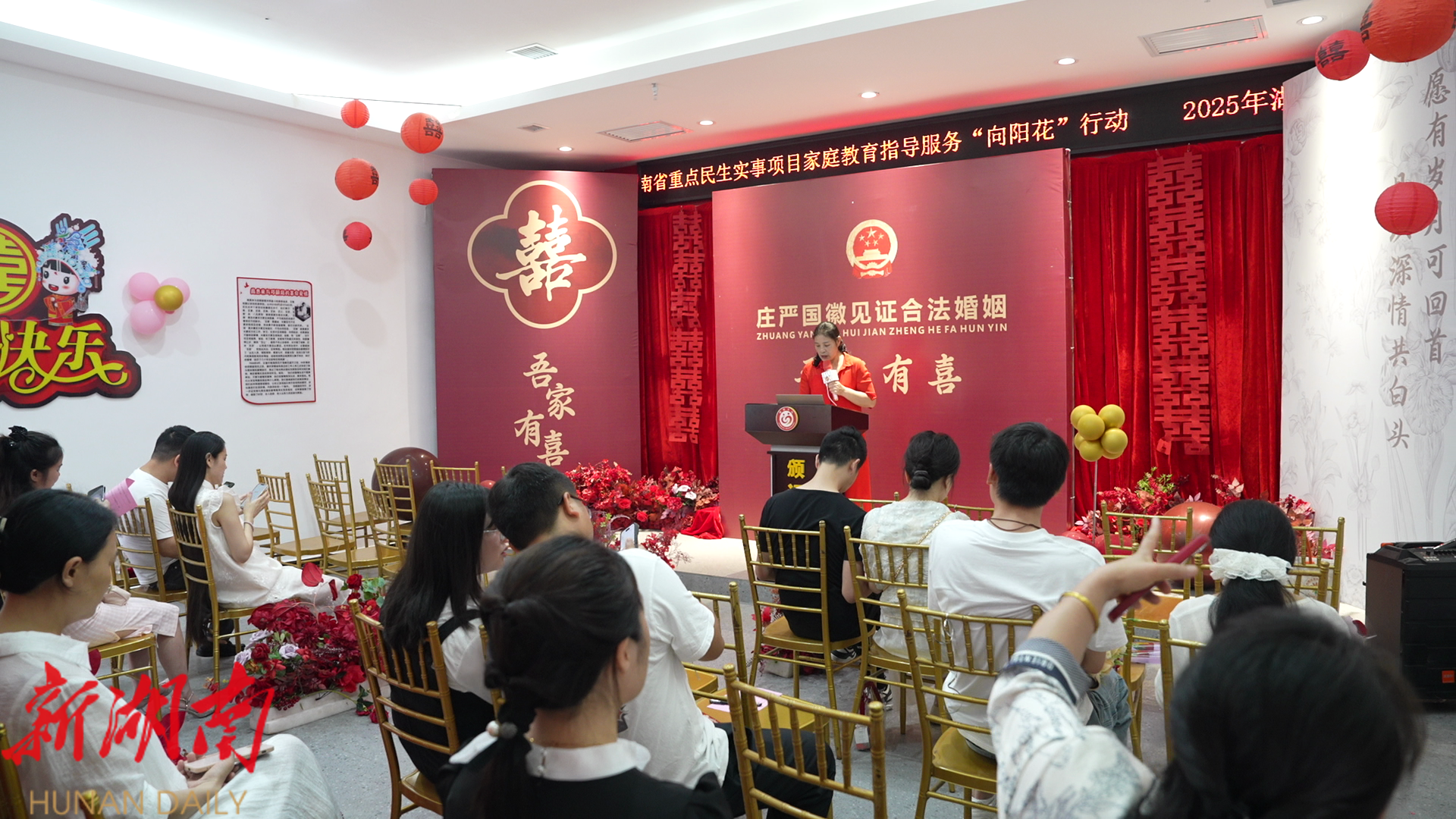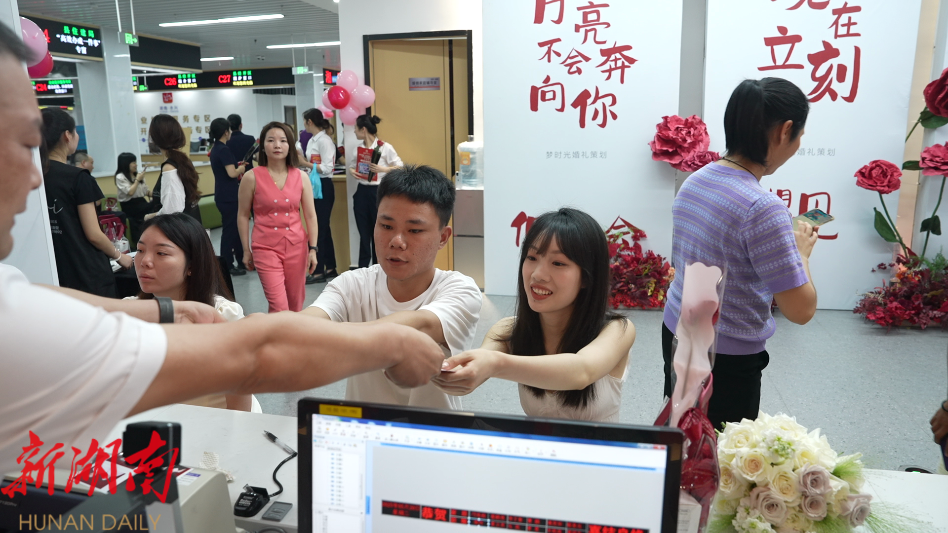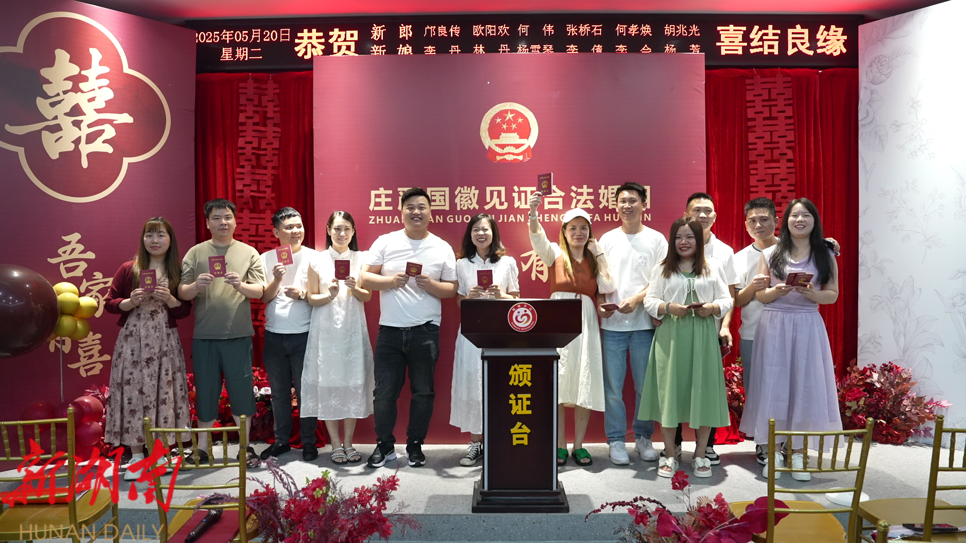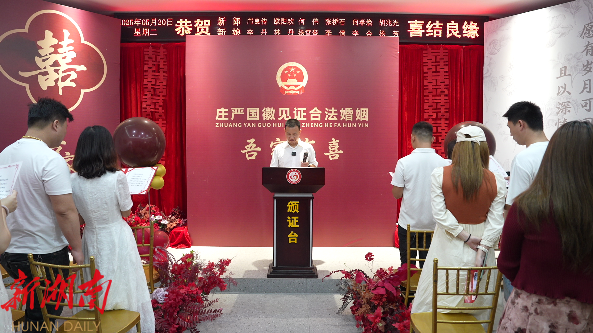 湖南日报·新湖南客户端5月20日讯(通讯员 朱志强 胡洪丹 李江山 )因“5・20”谐音“我爱你”,这一天成为众多新人结婚登记的首选日子。为满足新人的美好期望,永兴县民政局联合县妇联举办了集体颁证活动。