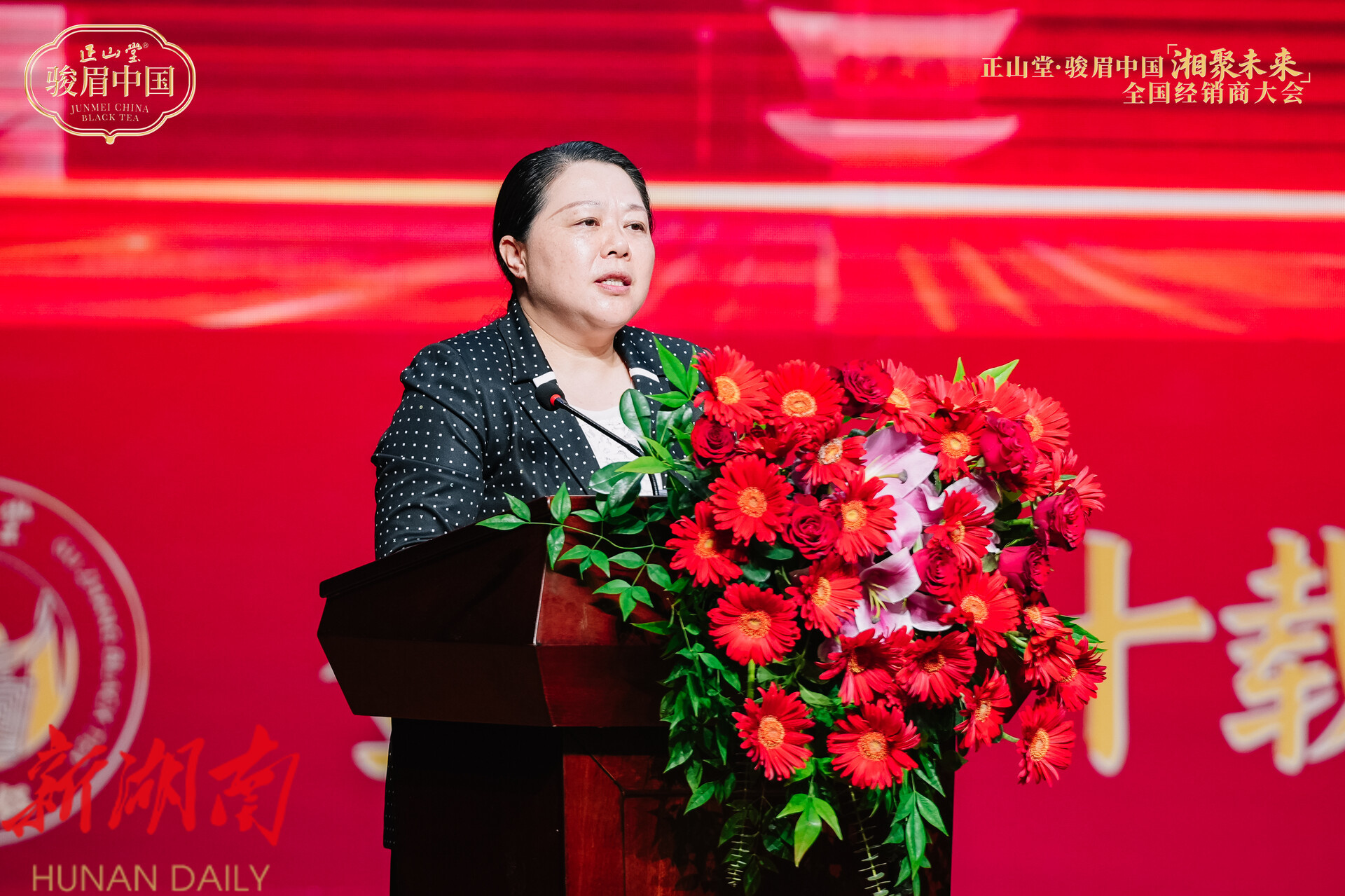 吴凌频在致辞中表示,好山好水出好茶,良种良态产佳茗。独特的地理气候优势孕育了“根根拔尖”的古丈毛尖,特别是正山堂将传承四百年的红茶制作工艺与湘西优质茶青原料、厚重的历史文化融合,淬炼出“色艳、质优、味佳”的古丈红茶。近年来,湘西州茶叶面积节节攀升、茶叶产业迅猛发展,茶已成为湘西各族群众增收致富的“金叶子”、人与自然和谐共生的“金名片”。站在新的起点上,湘西州将在贯通产加销、融合农文旅上持续发力,做好“五品”文章,下足“五强”功夫,着力打造“三茶统筹、三产融合”的茶产业高质量发展示范区,让湘西茶蜚声海内外,让全世界爱上湘西茶!