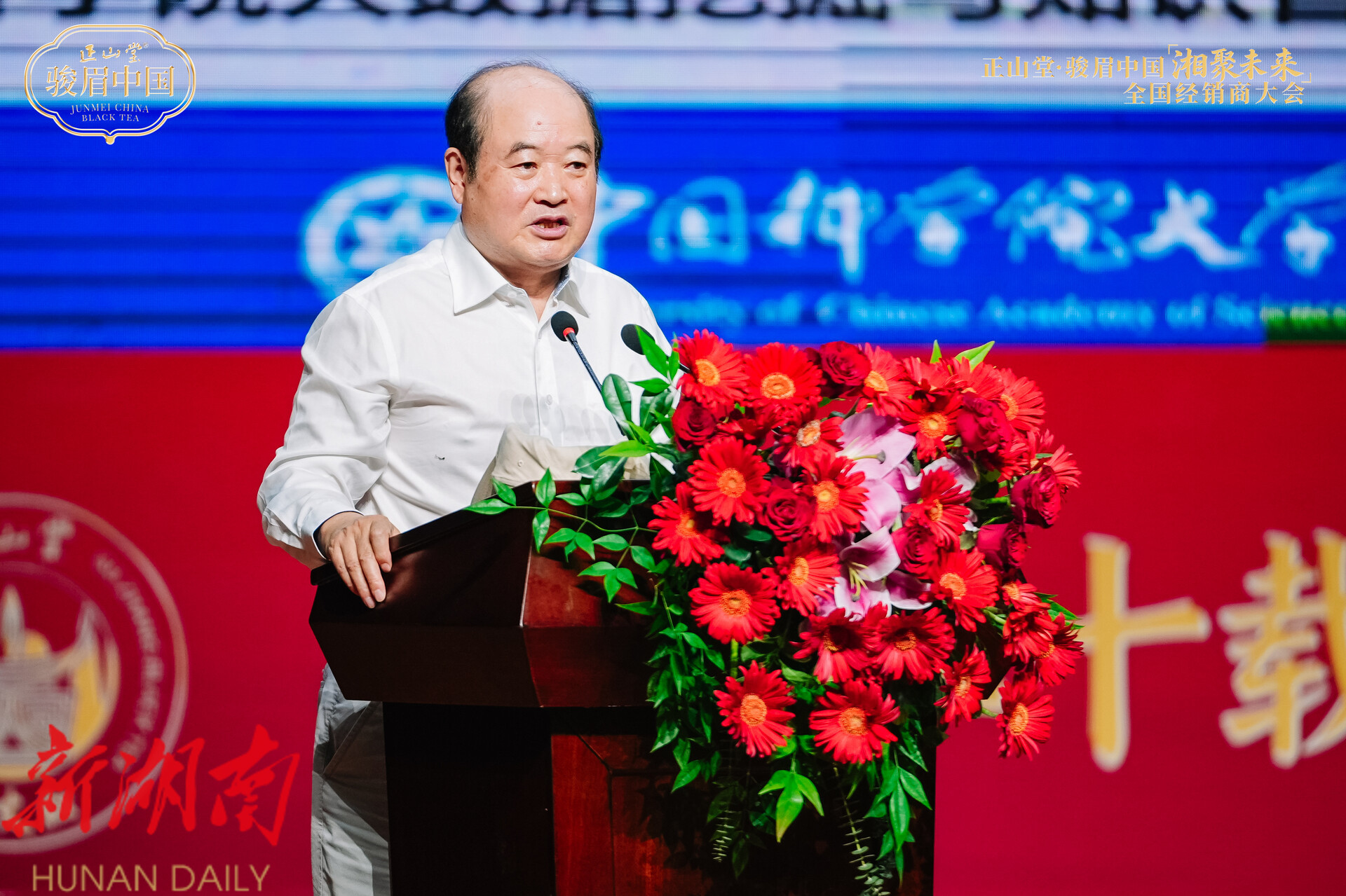 新湖南客户端5月20日讯(通讯员 郑湘)5月20日,“金骏二十载·骏眉传九州——2025年正山堂骏眉中国湘聚未来经销商大会”在古丈县会展中心举行。国务院参事、发展中国家科学院院士石勇,全国茶叶标准化技术委员会原秘书长翁昆,州人大常委会主任、州茶产业链链长吴凌频,县委书记滕朝辉,福建正山堂茶业有限公司董事长江志东出席。本次大会还汇聚全国茶叶行业专家、政府代表、媒体人士及经销商代表等500多位嘉宾齐聚古丈。品茶香,论茶道,共赏“古丈红茶”的独特魅力,共享古丈红茶在数字化时代的发展成果,共谋中国红茶产业高质量发展新路径。