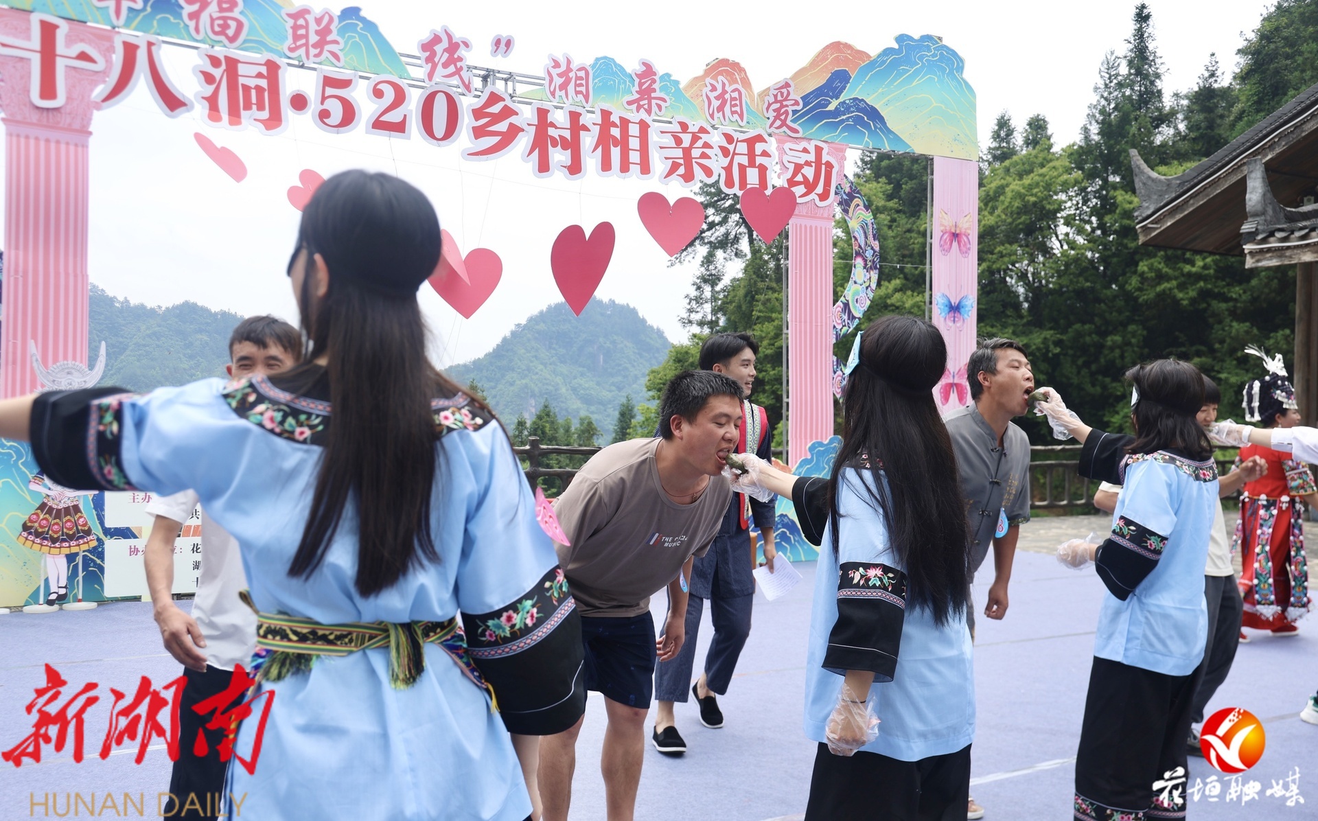 湖南日报·新湖南客户端5月21日讯(通讯员: 宋显金 林彬 杨泽江 吴向申 邓雨露 梁金梅 张庆港)5月20日,“幸福联线”湘亲湘爱十八洞·520乡村相亲活动在花垣县十八洞村浪漫举行。本次活动通过“婚恋服务+文化传承+乡村振兴”的创新模式,为广大单身青年搭建交友平台,籽籽同心,多元共美展现湘西少数民族婚俗文化与乡村振兴成果,促进各族青年交往交流交融,共绘民族团结幸福画卷。活动吸引来自湘西州各县市及秀山、松桃等周边县市的社会各行各业200余名广大青年报名参加。