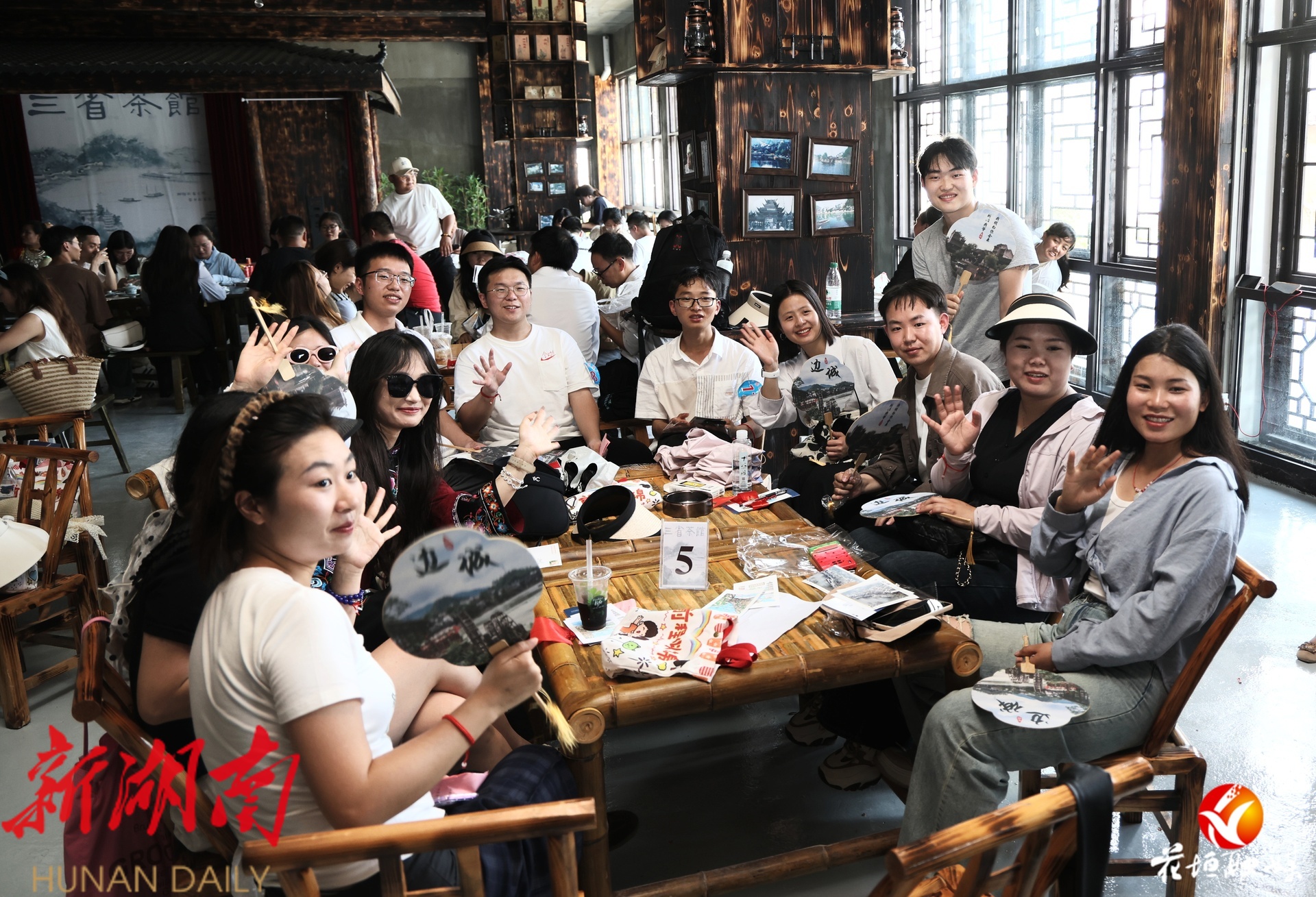 茶馆里,男女嘉宾沉浸式体验《边城》故事里茶楼的大碗茶,“茶馆情歌会”正热闹进行。红娘们传授男女表达爱意技巧,男女嘉宾认真请教如何用苗歌表达爱意,现场欢声笑语不断。男女嘉宾们通过给翠翠传递信物,寻找傩送获取线索,而在沈从文旅居地,“情笺秘话”活动引得众人驻足嘉宾们与“沈从文”会面,获取情话后,迫不及待地前往北门码头,将甜蜜话语传达给“张兆和”。