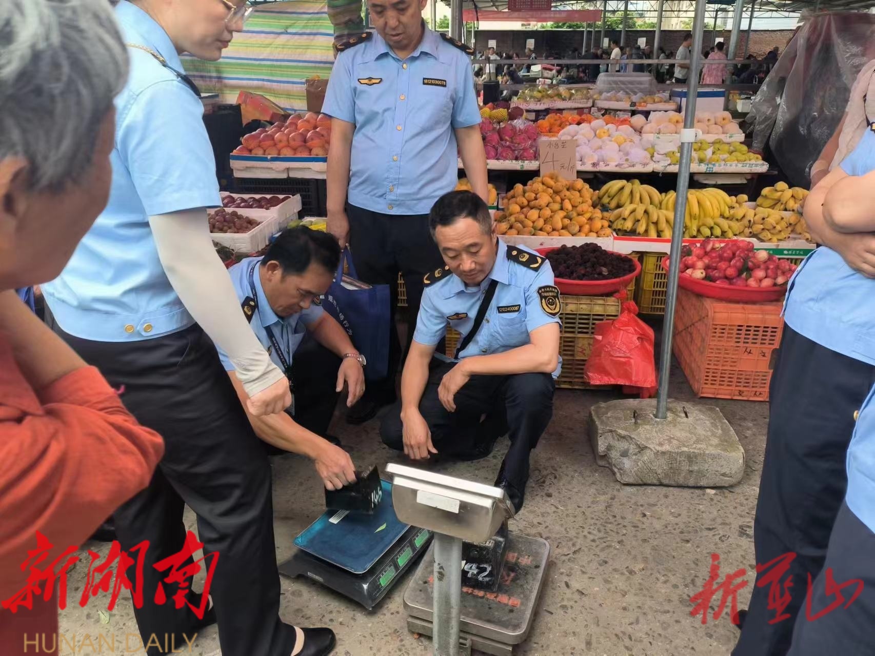 活动当天,蓝山县市场监督管理局执法人员和计量技术人员对市场内计量器具开展“地毯式”排查。对水产、水果、肉类摊位用于贸易结算的电子计价秤进行仔细检查,查看是否在检定有效期内,并通过标准砝码对其进行计量监督检查,同时查看是否存在作弊装置等。检查过程中,执法人员还对商家进行计量法律法规宣传教育,督促其规范经营。