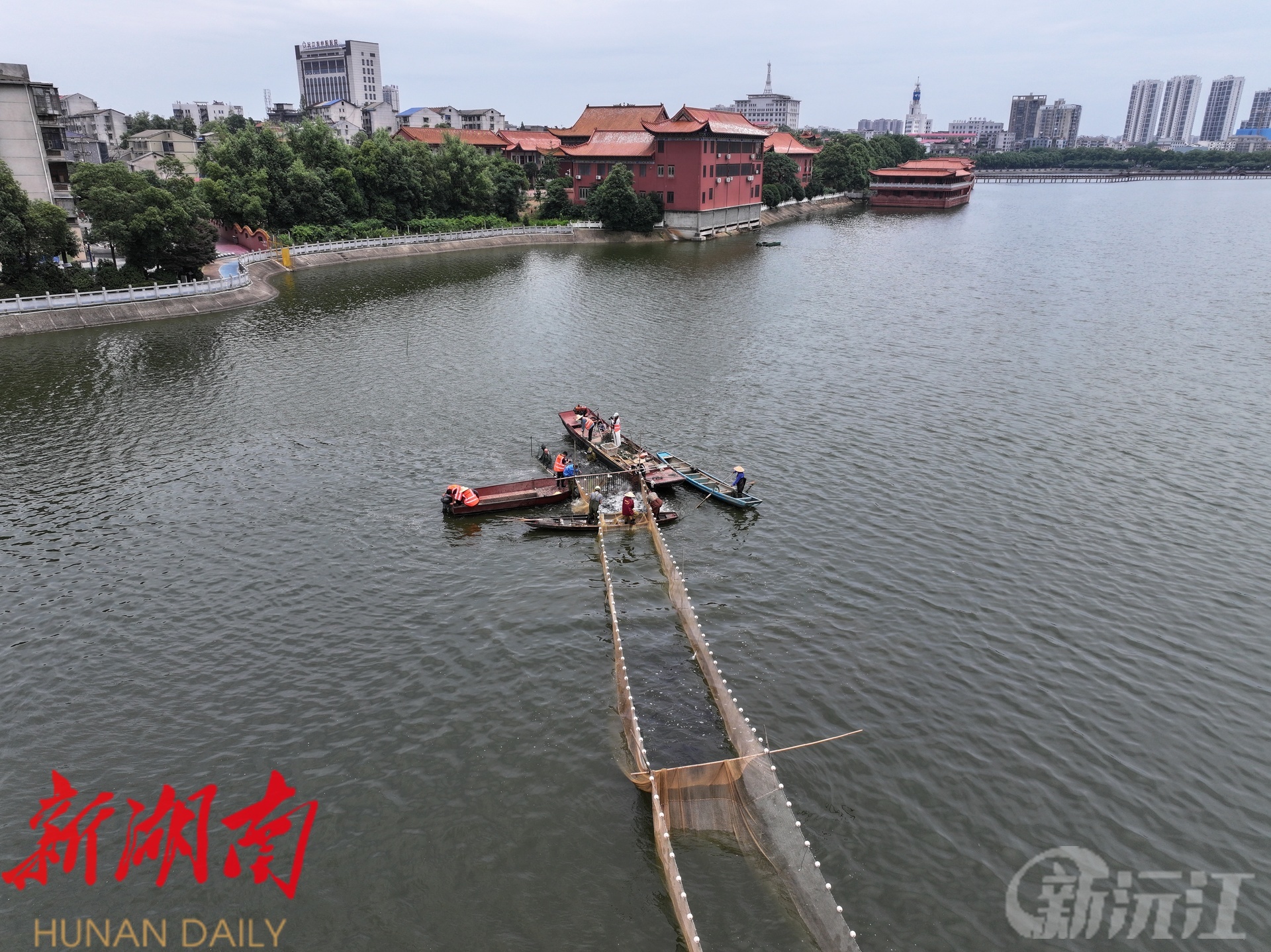 沅江开启内湖天然水域年度首捕 20万斤有机大头鱼“跃”上全国餐桌