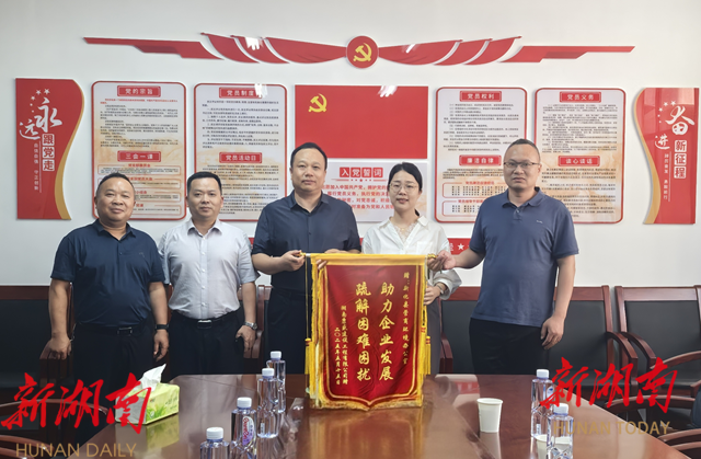 湖南日报·新湖南客户端5月21日讯(通讯员康覃)5月19日,湖南康盛建设工程有限公司带着一面绣着“助力企业发展 疏解困难困扰”的锦旗送到新化县营商环境办公室。