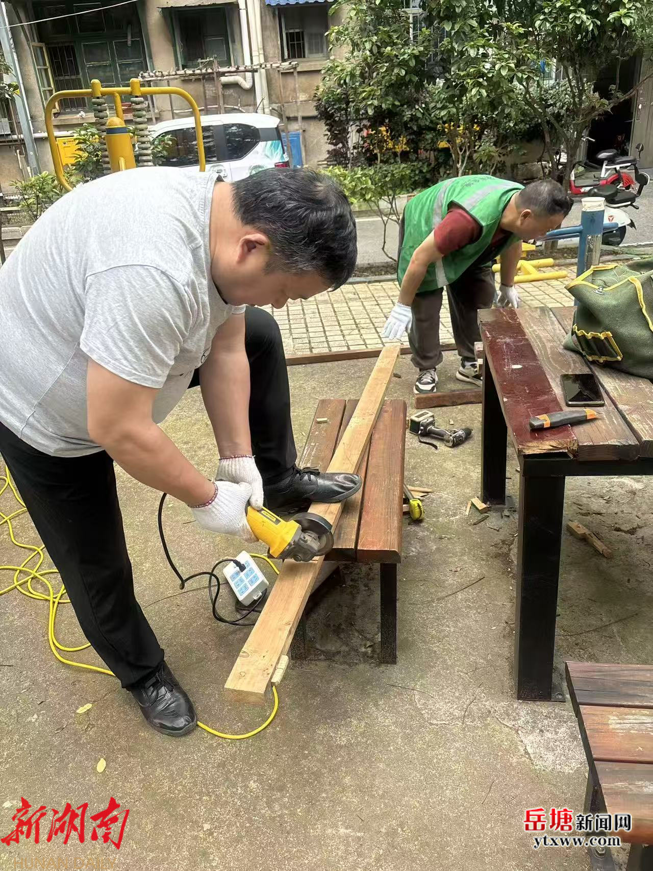 小区邻长、网格员在小区内走访时发现,小区内部分公共座椅陈旧破损,影响居民日常休息。为此,社区党总支联合物业组织维修人员对小区4处休闲桌椅进行加固翻新,更换螺丝配件4套,修补木质面板及木条8张。社区党总支创新采用“专业技工+1名党员助手”的组团模式,既解决技术难题又培养党员及居民自治能力。刚修好的休闲桌椅,居民们已围坐畅谈社区新变化。