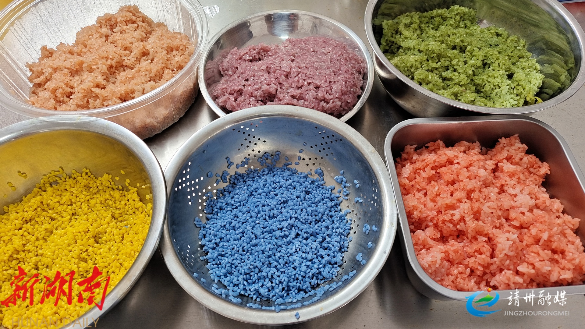 到了蒸饭环节,孩子们小心翼翼地将泡好的糯米放进蒸锅,满心期待。半小时后,七彩糯米饭出锅。鲜艳的色彩、晶莹的米粒搭配浓郁的香气,令人垂涎欲滴。