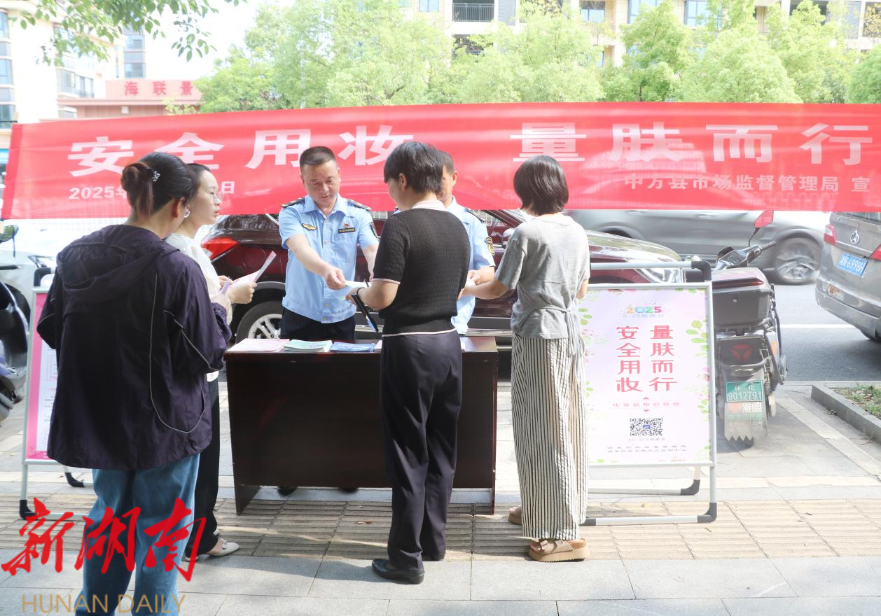 中方融媒5月21日讯 (通讯员:潘胡安)为加强化妆品安全科普知识宣传工作,进一步提升公众安全用妆意识, 5月21日,中方县市场监督管理局在辖区内开展以“安全用妆,量肤而行”为主题的“5·25爱肤日”宣传活动,营造良好的安全用妆环境。