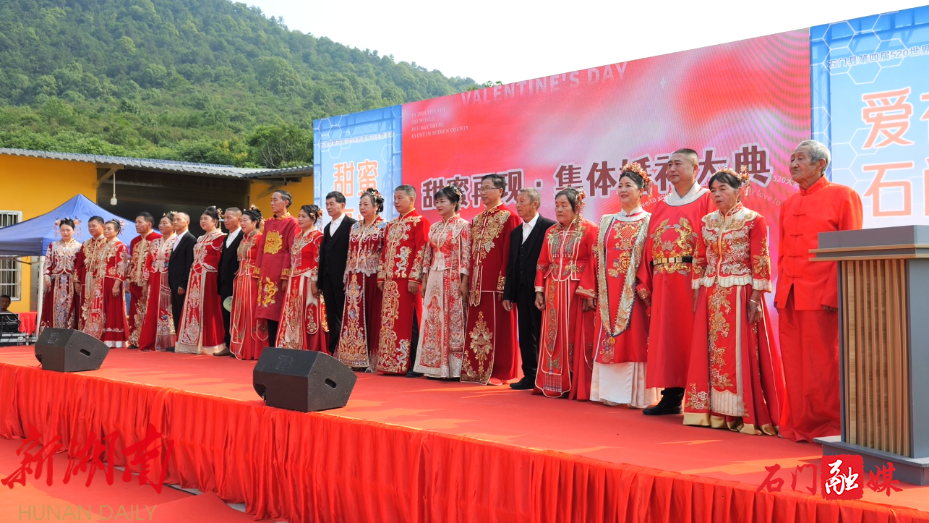 活动中,12对不同婚龄段的夫妻穿过浪漫花门,举办了一场特别的集体婚礼。他们如同蜜蜂一般,用辛勤的汗水酿造生活,以真挚的情感守护家园。活动还举办了产业签约仪式和夹山镇商会成立大会,为推动蜂产业标准化、品牌化、规模化发展注入了新活力。