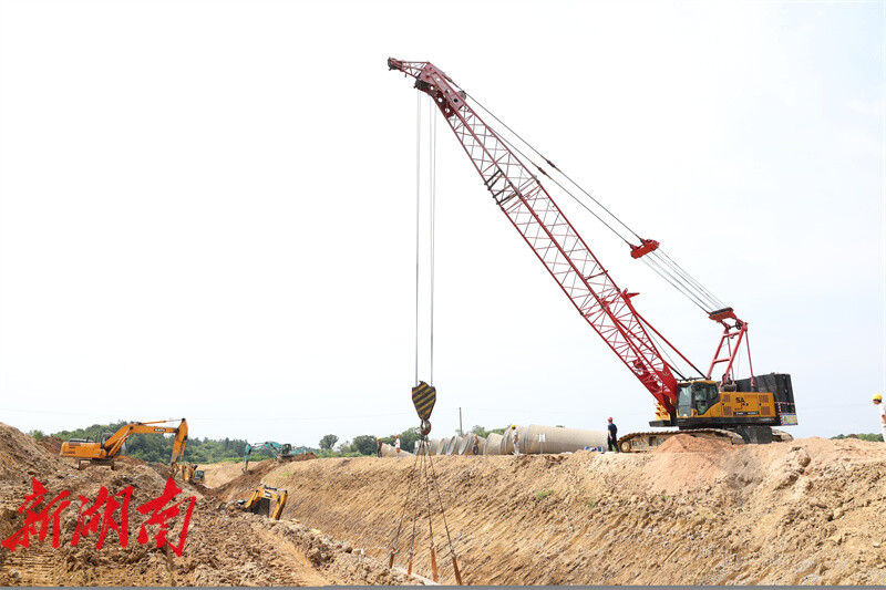 铁山灌区坪费湖补(引)水工程项目于2024年8月3日正式开工建设。目前,管道部分完成管道安装14.5公里,泵站部分已完成主、副厂房下部结构和进水流道工程施工,完成了项目总进度的82%。