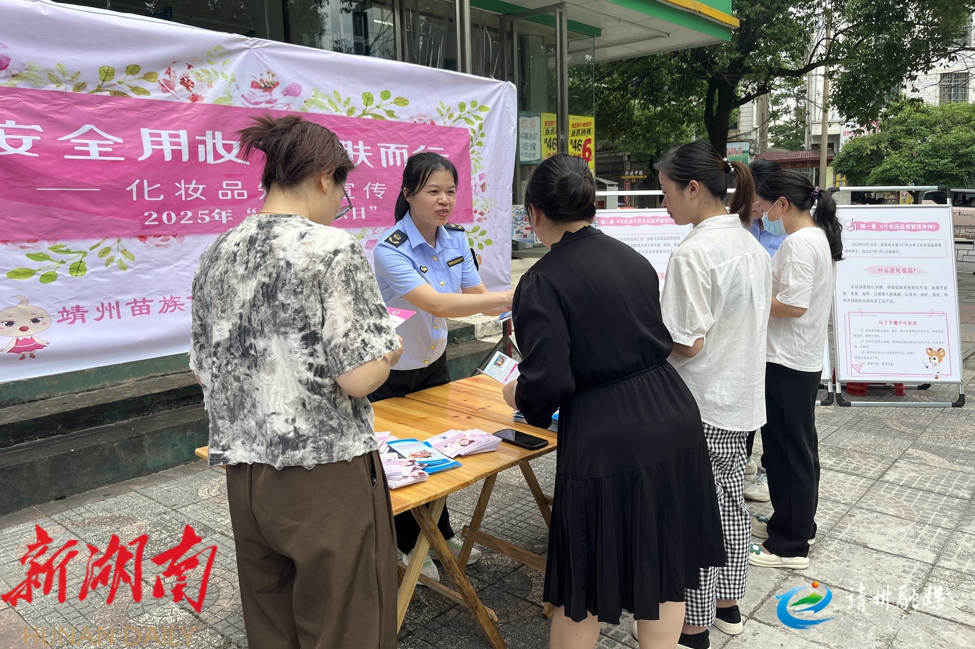 靖州融媒5月21日讯 (通讯员 李业芬)5月21日,靖州苗族侗族自治县市场监督管理局以“5·25爱肤日”为契机,围绕“安全用妆,量肤而行”主题,在梅林社区红星街道开展化妆品安全科普宣传活动。