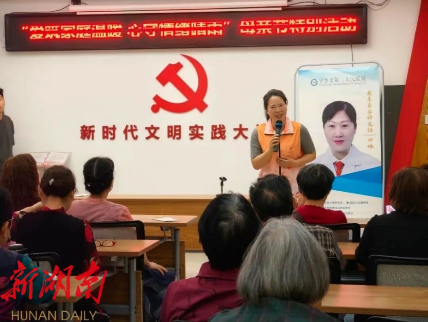 宁乡市第二人民医院高级心理治疗师田琳以“从心出发 乐享晚年”为主题开展心理讲座,深入浅出地讲解了心理健康知识,现场带领母亲们做心理放松操,教母亲们做正念冥想,引导她们关注自身心理状态,学会自我调节情绪。