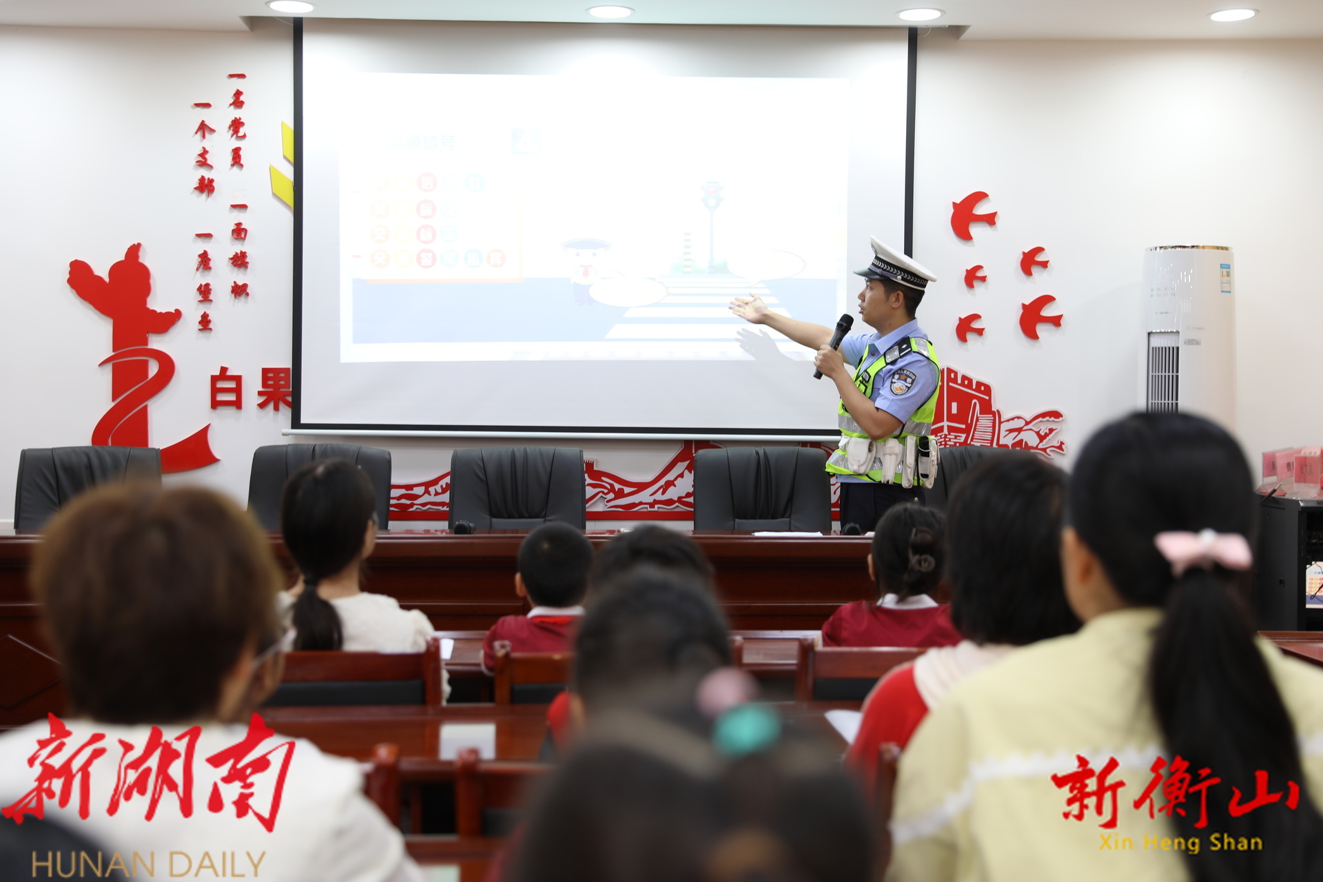 新衡山客户端5月22日讯(记者:赵诗 向微 通讯员:赵雪军 江海燕)为切实提升学生及家长的交通安全意识,有效预防和减少涉校道路交通事故发生,5月19日,衡山县公安局交警大队白果中队组织民警走进白果镇中心完小,开展交通安全主题宣讲活动,并送上安全头盔,为师生和家长们的出行安全保驾护航。