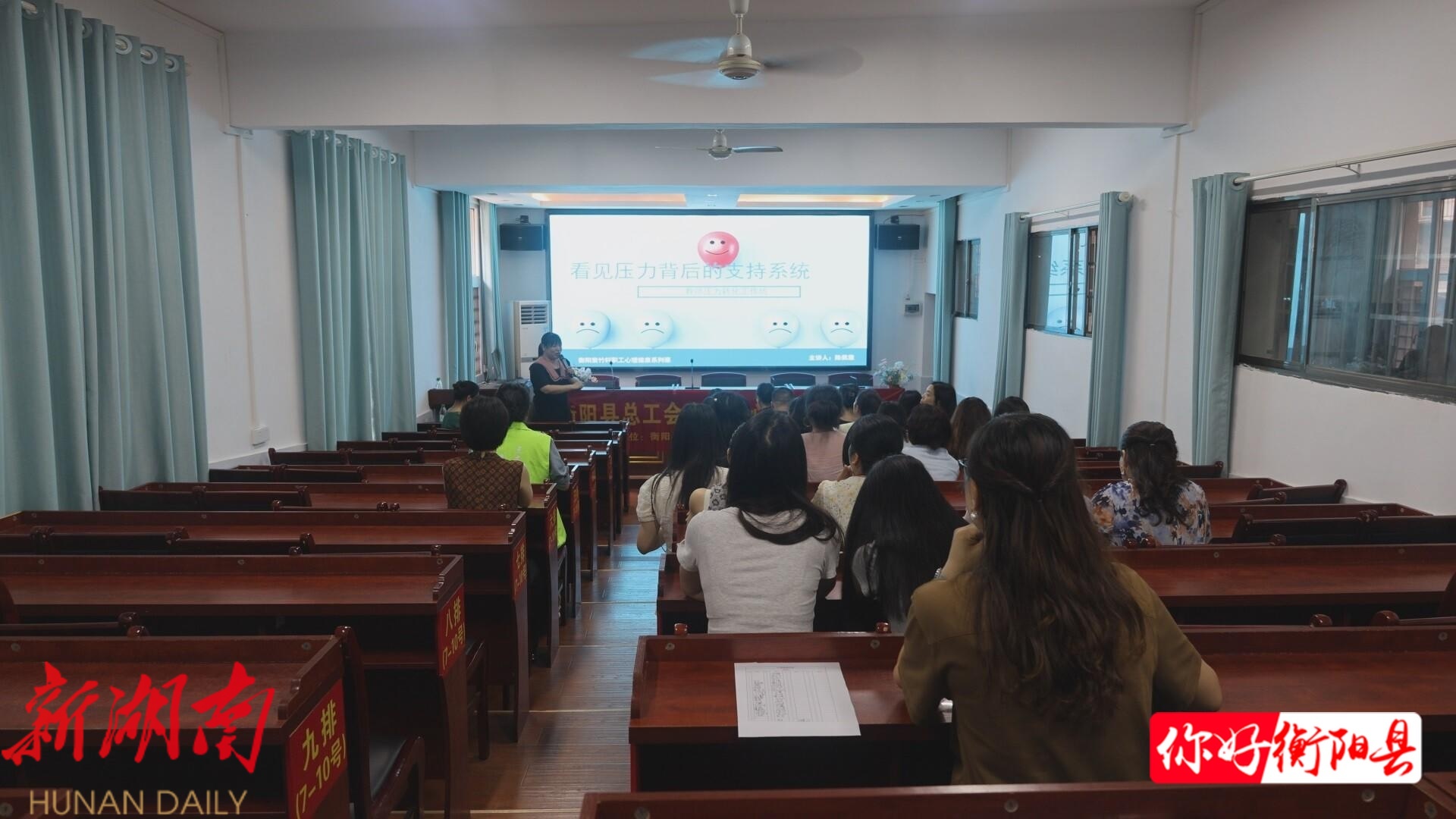衡阳县融媒5月22日讯(记者:廖辉煌 ) 5月21日,县总工会、“衡阳紫竹轩心理”联合开展教师心理减压进校园活动,为教师职工构筑心理健康“防护网”,赋能职场幸福力。