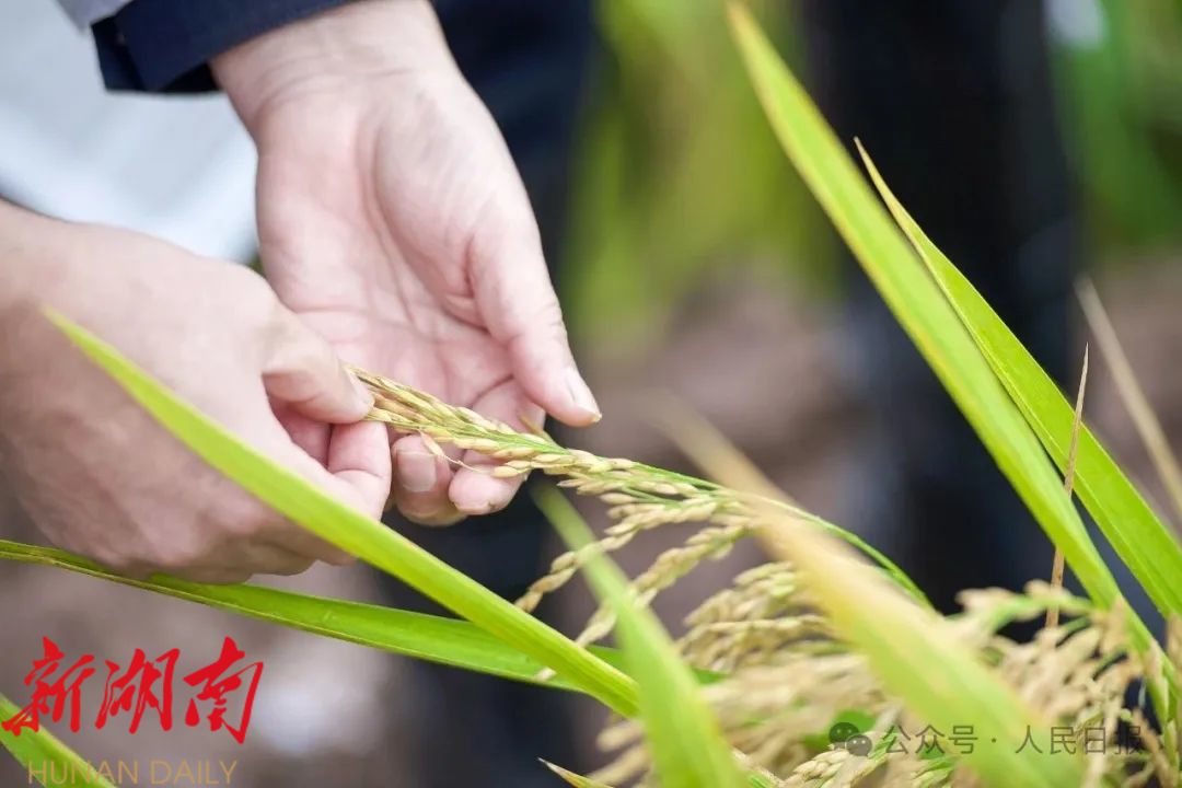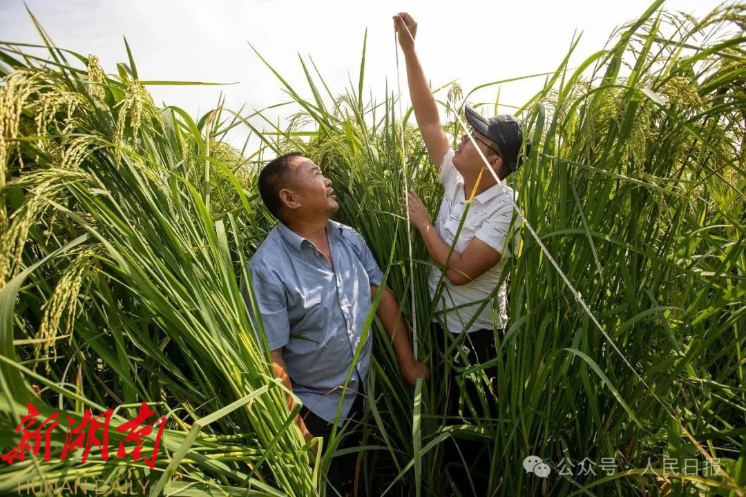 2022年9月21日,浙江金华,农业工作者检查“巨型稻”生长情况。