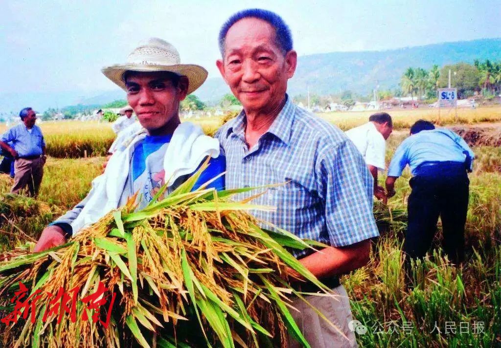 袁隆平与菲律宾稻农在一起。湖南杂交水稻研究中心供图