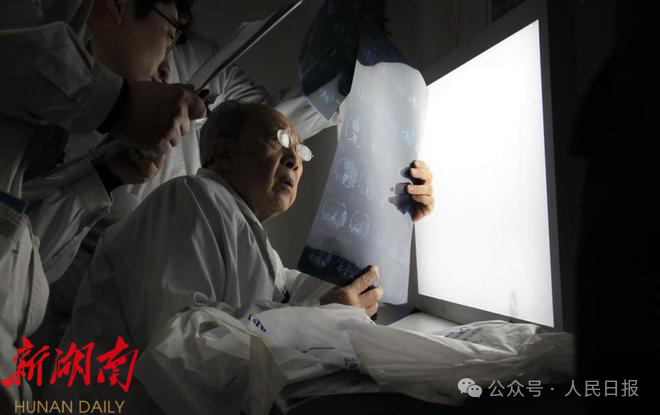 吴孟超带着学生仔细诊断患者病情,确定手术方案。新华社记者 王建民 摄