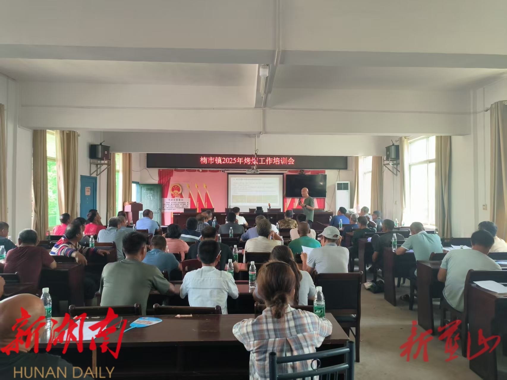 新蓝山客户端5月22日讯 (通讯员 周云)5月22日上午,楠市镇组织召开2025年烤烟工作培训会。镇相关领导、竹市烟叶生产收购站工作人员及全体烤烟种植户等80余人参加会议。