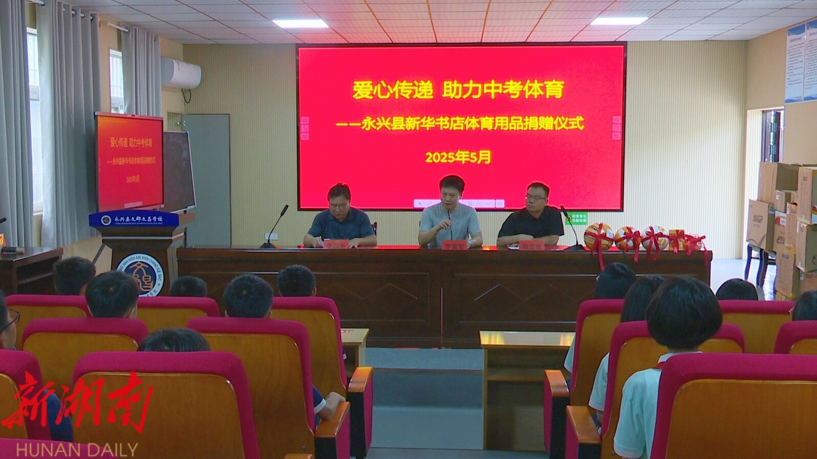 湖南日报·新湖南客户端5月22日讯(通讯员 李华)5月22日,永兴县新华书店向县教育局考试院捐赠一批体育中考专用器材,助力学生备战体育中考,捐赠仪式在文昌学校举行。